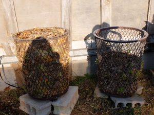沢山の落ち葉を集めたら鉄製のくずかごに30㎝~40㎝程度入れては踏み固め、