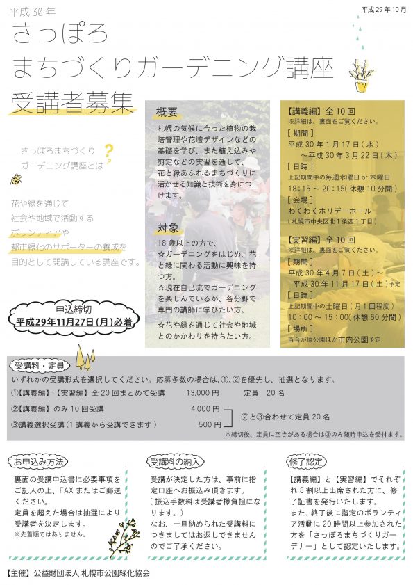 平成30年さっぽろまちづくりガーデニング講座募集案内(PDF 431KB)