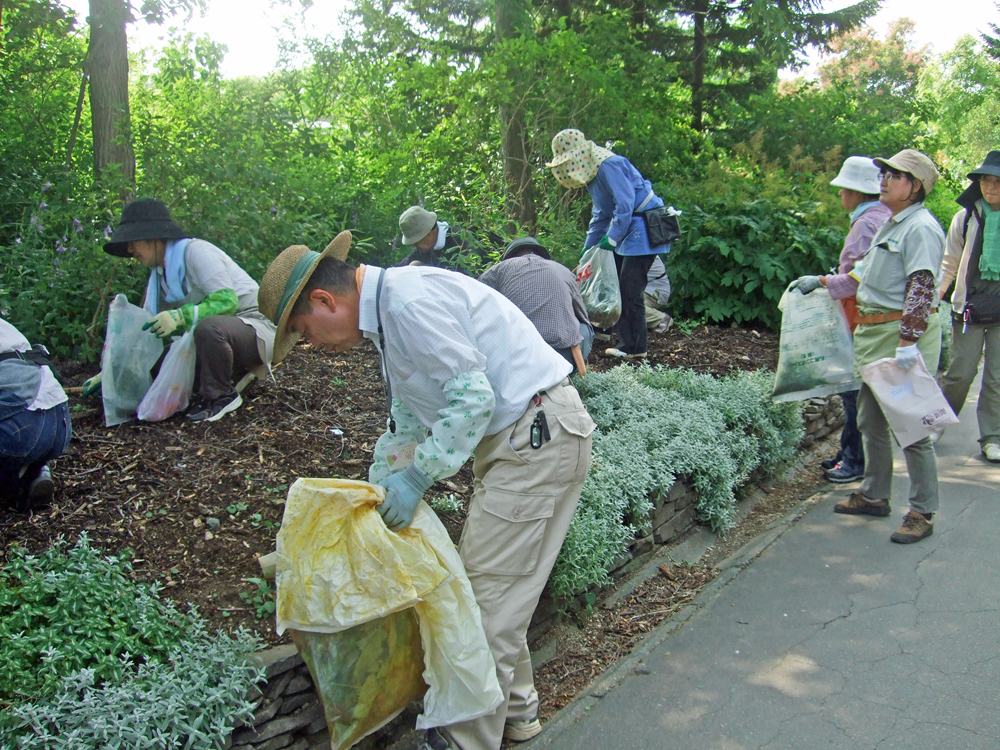 午前は新琴似六番通で「街なかの花壇管理」を、午後からは百合が原公園で「宿根草管理」を行いました。