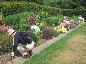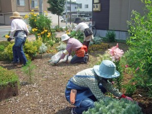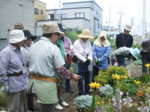 講師の田淵さんの指導を受けながら、花の切り戻しや草取りなどを行いました。