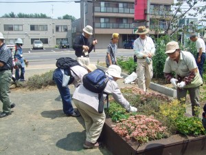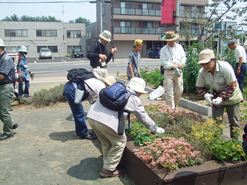 この日は「新琴似六番通街づくりクラブ」アドバイザーの秋山さん、「みんなで創る花壇」を管理している