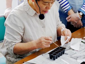 第一回目は月形町より、㈲コテージガーデンの梅木あゆみさんをお迎えして「播種・育苗」の実習を行いました。