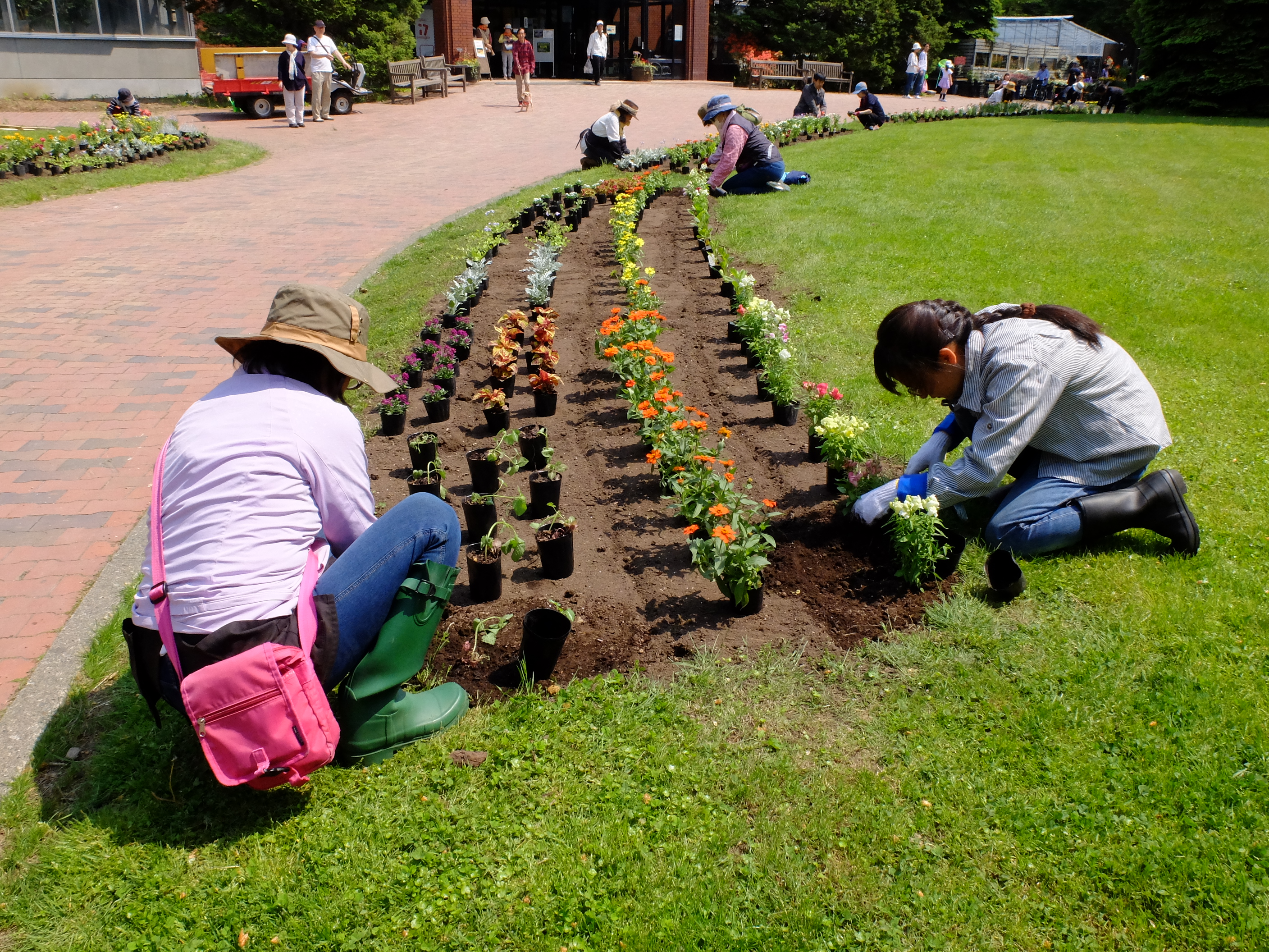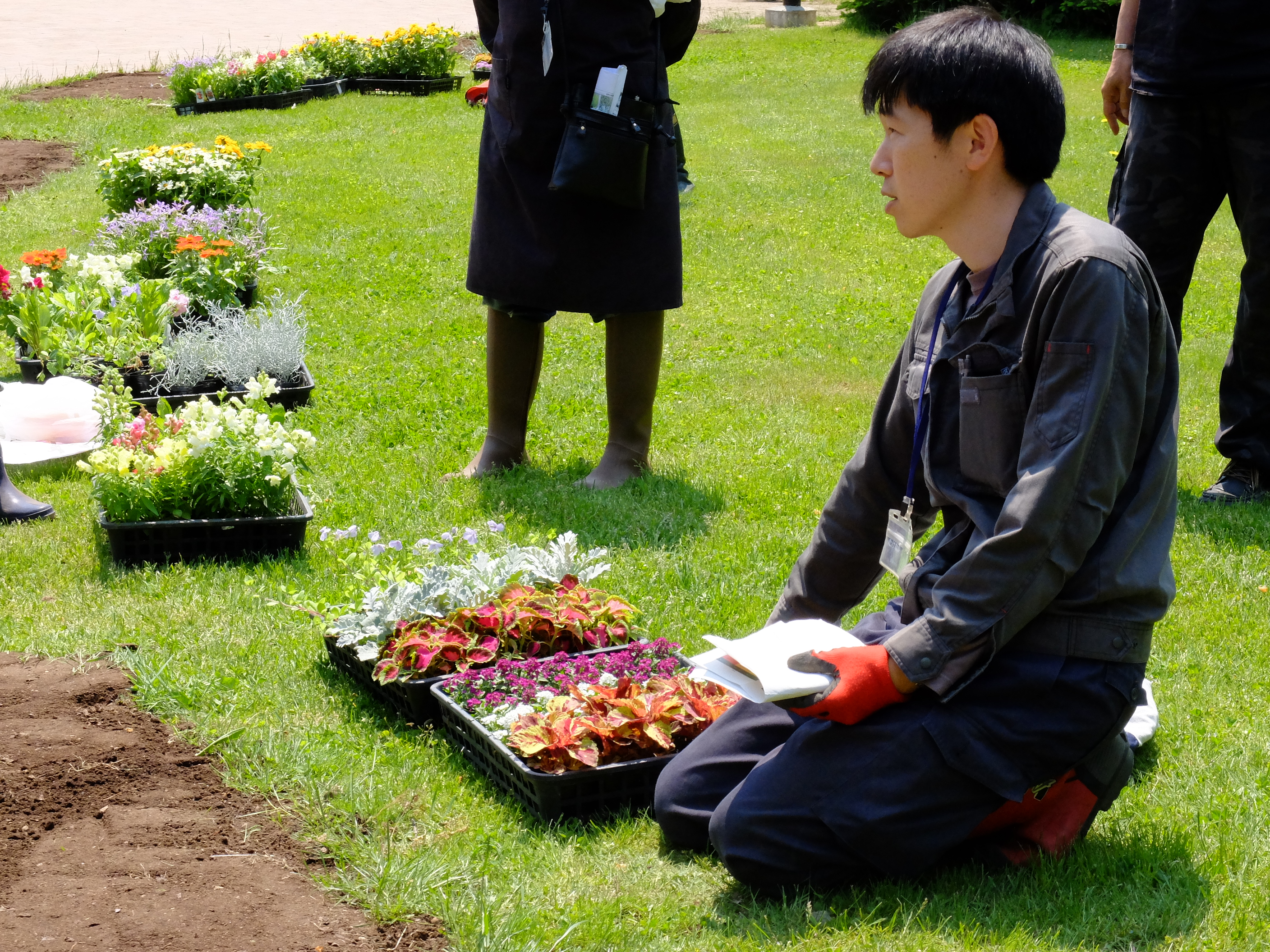 今回は「一年草花壇」をテーマに、百合が原公園の入り口から緑のセンター前へと続く花壇(5面)に植え込みを行い、