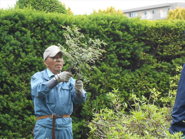 午後からは剪定の実習です。どこをどう切ったらいいのか、最初は不安そうだった受講者のみなさんでしたが、「失敗しても大丈夫。どのような姿にしたか想像して、感性のままに切ればいい。」という先生の言葉を受けて、はじめはゆっくりですが徐々に作業を進めていきます。
