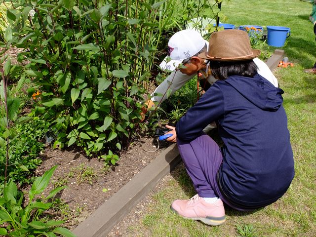 ひとつひとつの植物についてリラの会のみなさんに教えてもらいながらメンテナンスを進めます。