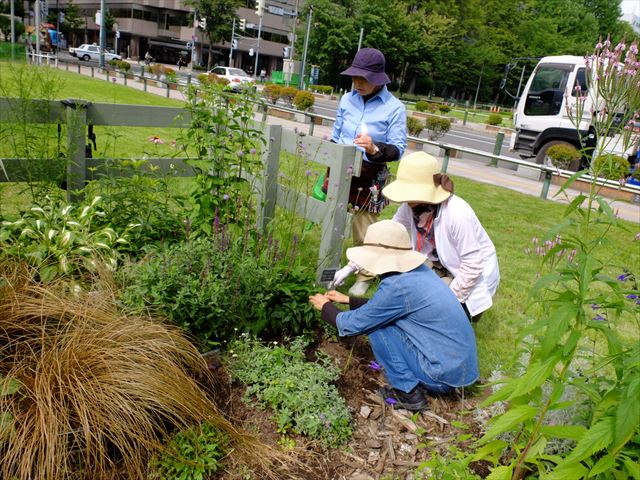 ガーデニングリラの会とは、さっぽろ緑花園芸学校(さっぽろまちづくりガーデニング講座の前身)の修了生たちが発足させた団体で、大通班は大通西8丁目の花壇を通年で管理されています。