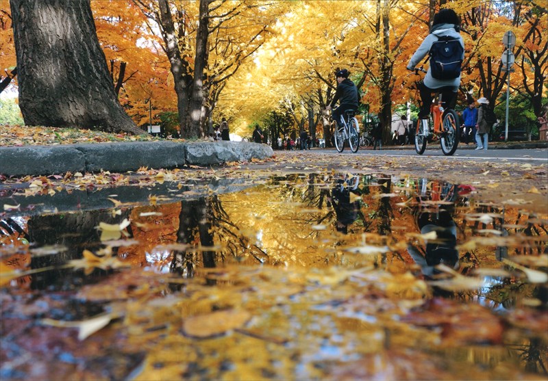 - 「紅葉と赤い帽子の子供たち」(大通公園) 玉澤早苗 さん