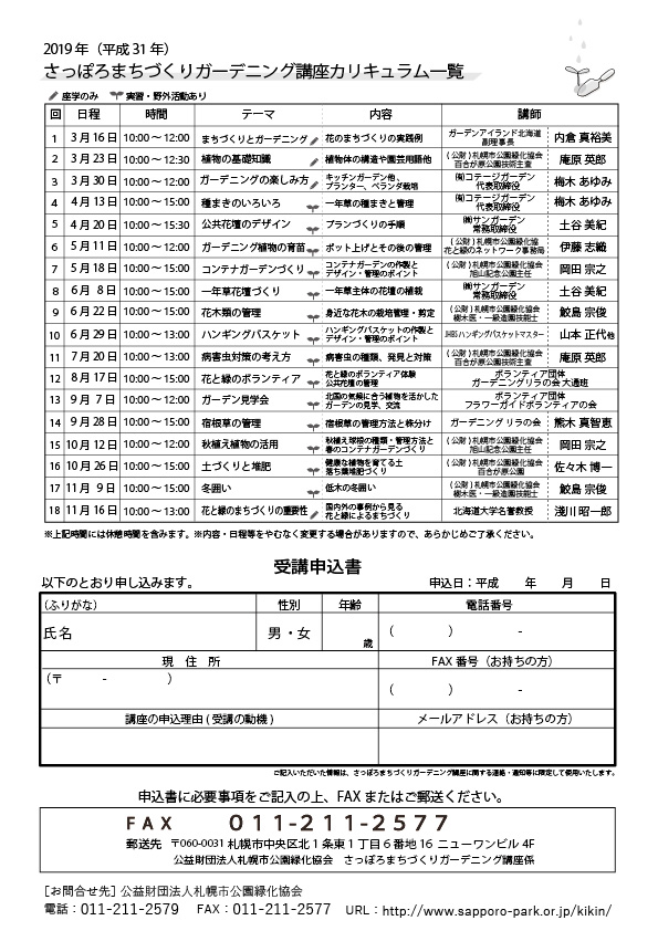 2019年(平成31年) さっぽろまちづくりガーデニング講座受講者募集中です!※締め切りました