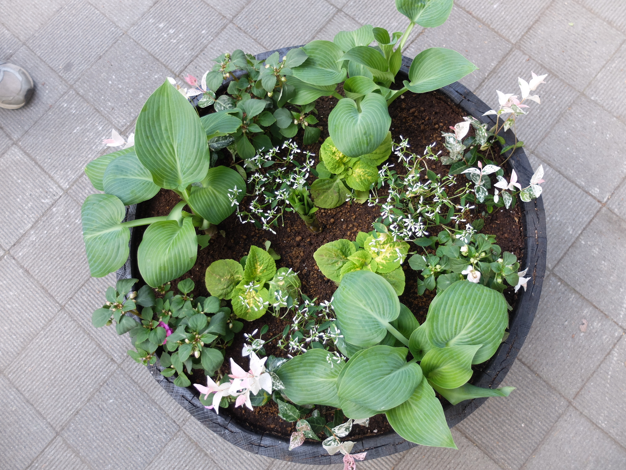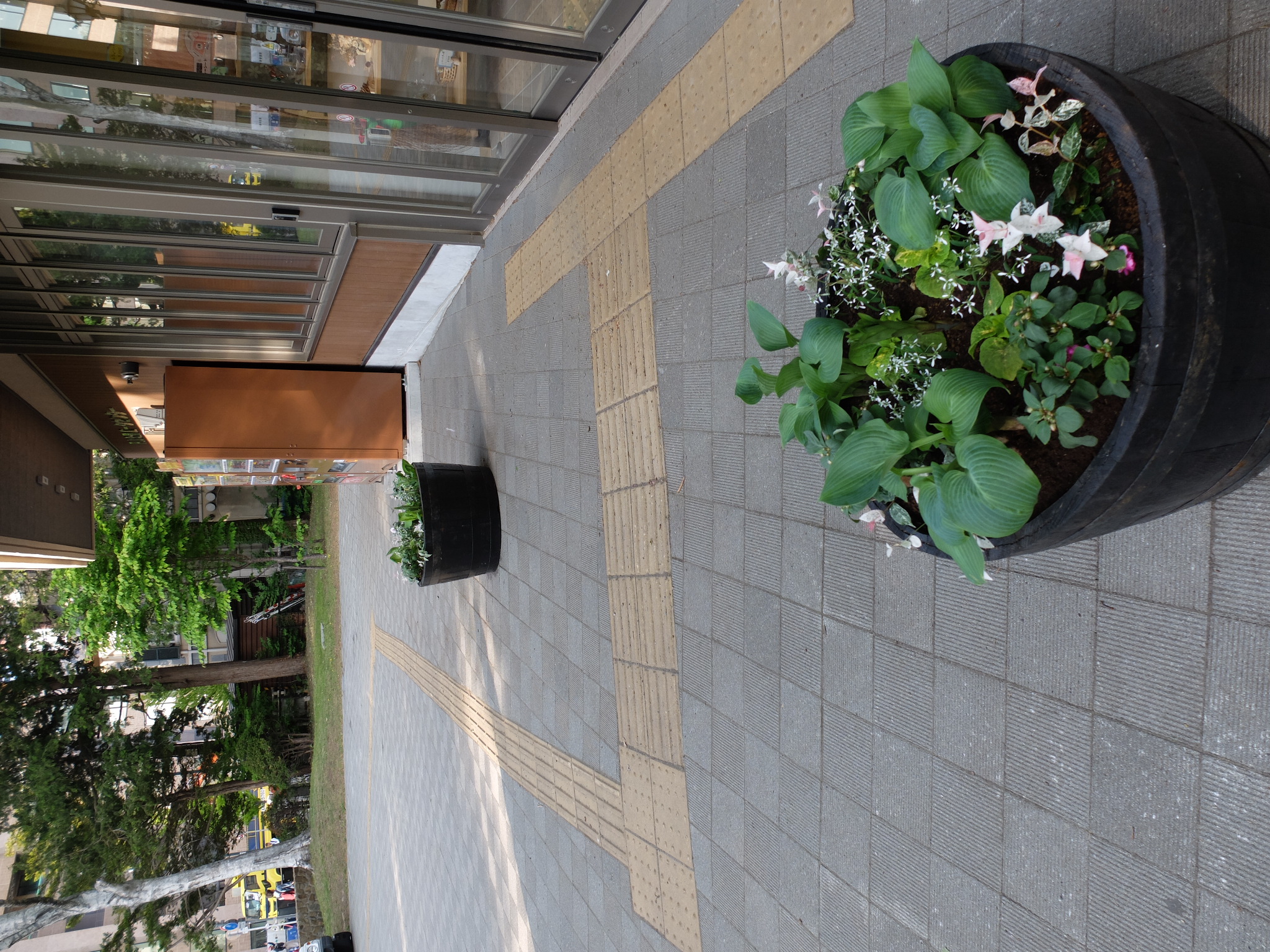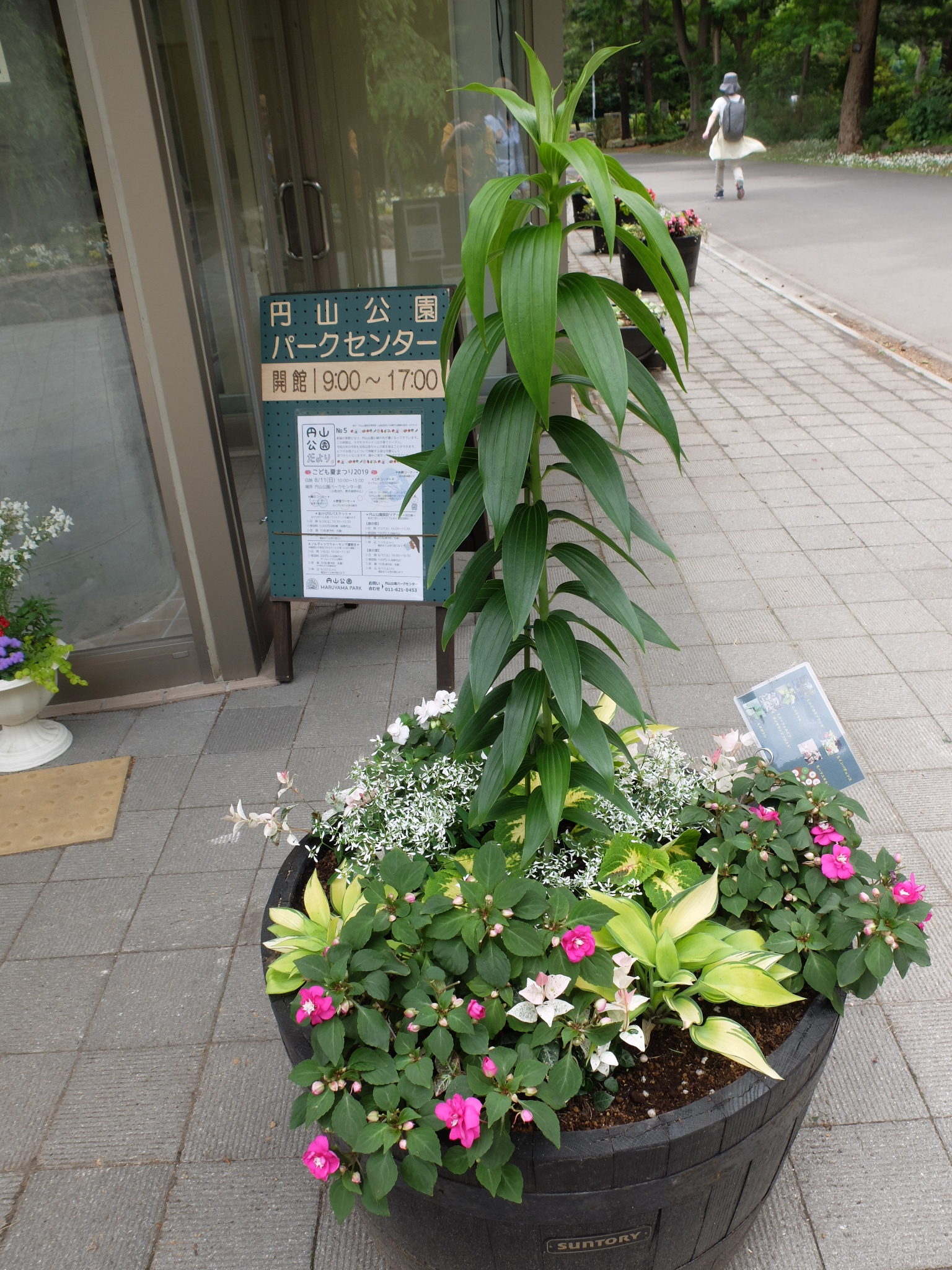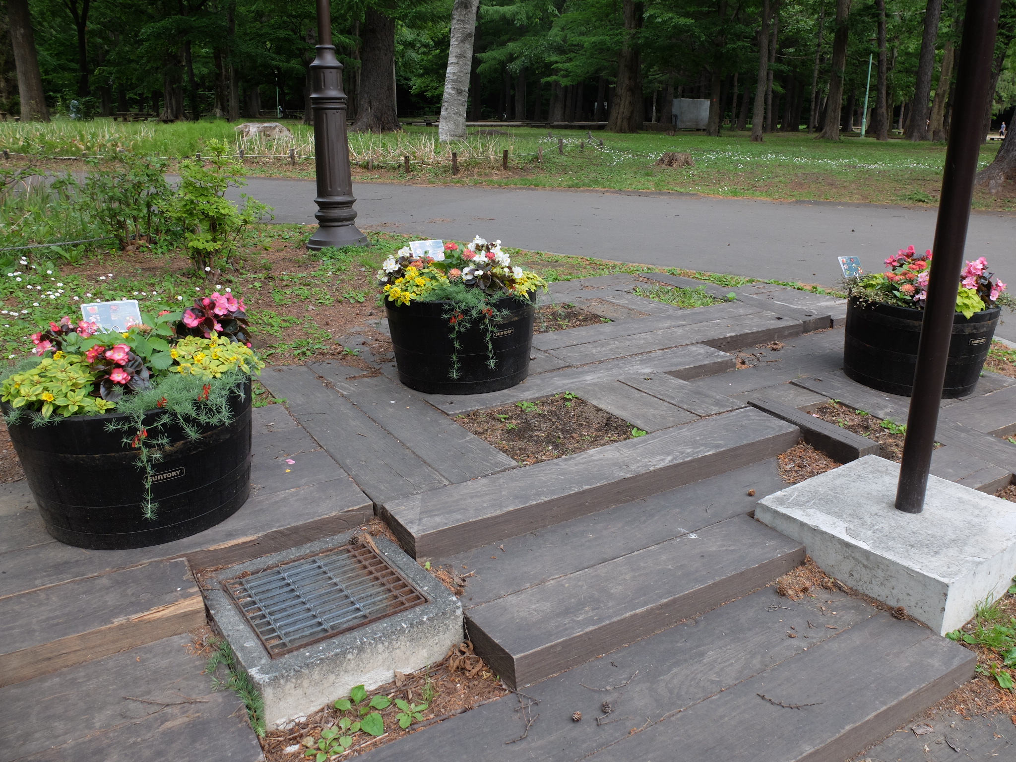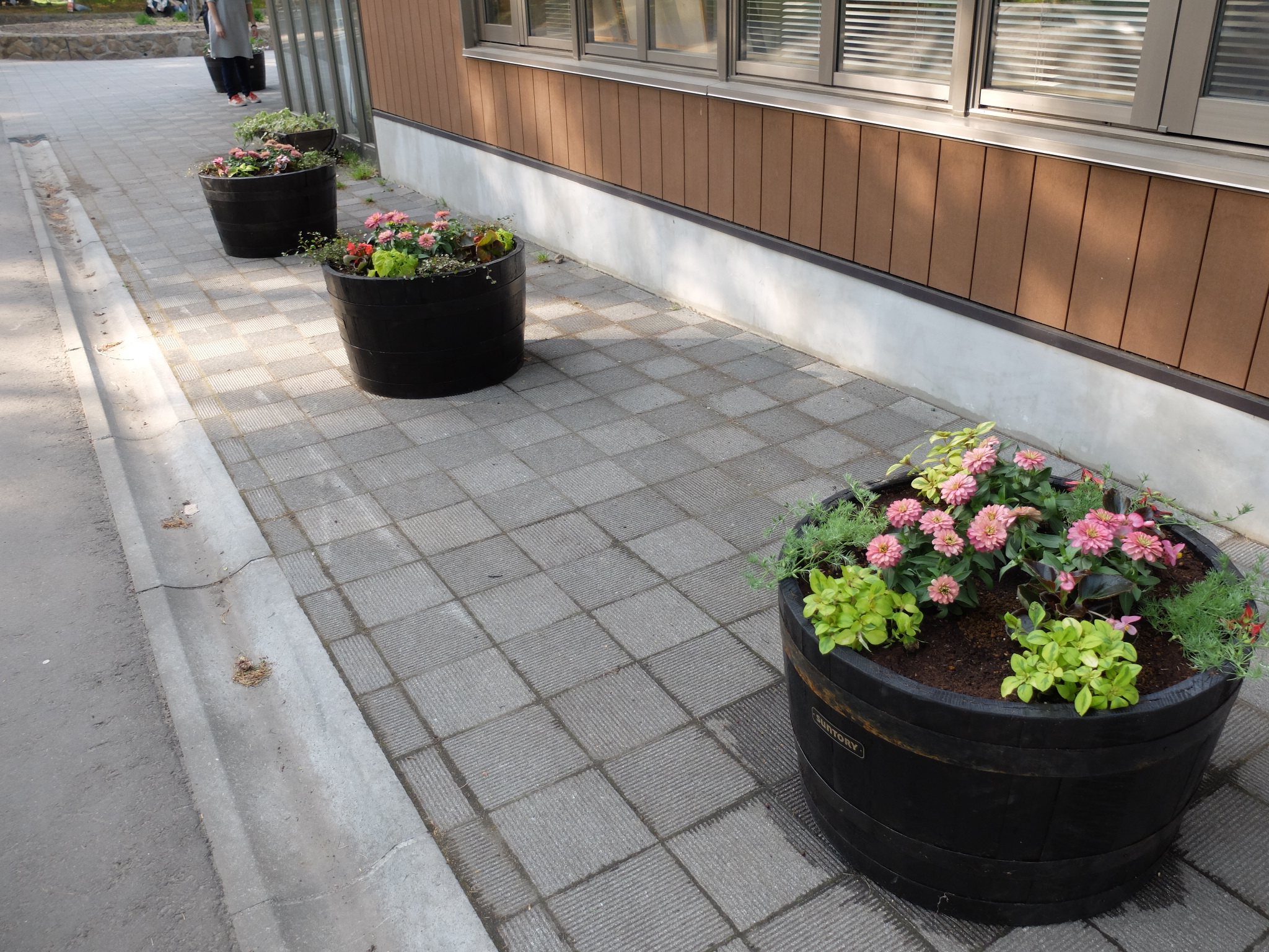 今回メンテナンスを行ったコンテナは、円山公園においてさっぽろまちづくりガーデニング講座の第7回目「コンテナガーデンづくり」の実習で5月18日に植えたものです。