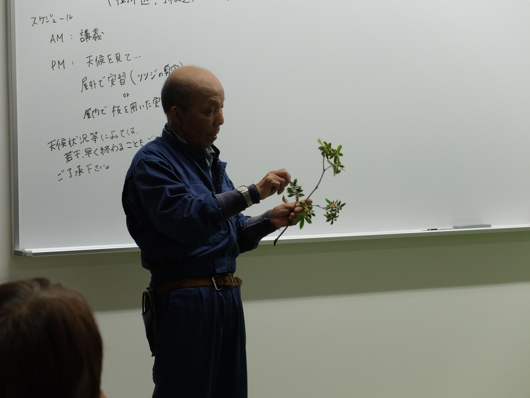 午前中は剪定の時期や剪定の仕方、それぞれの樹種の特徴などを講義形式で学びました。