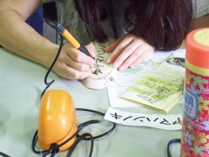 そしてその文字を、バーニングペンという樹を焦がすペンを使って焦がしていきます。