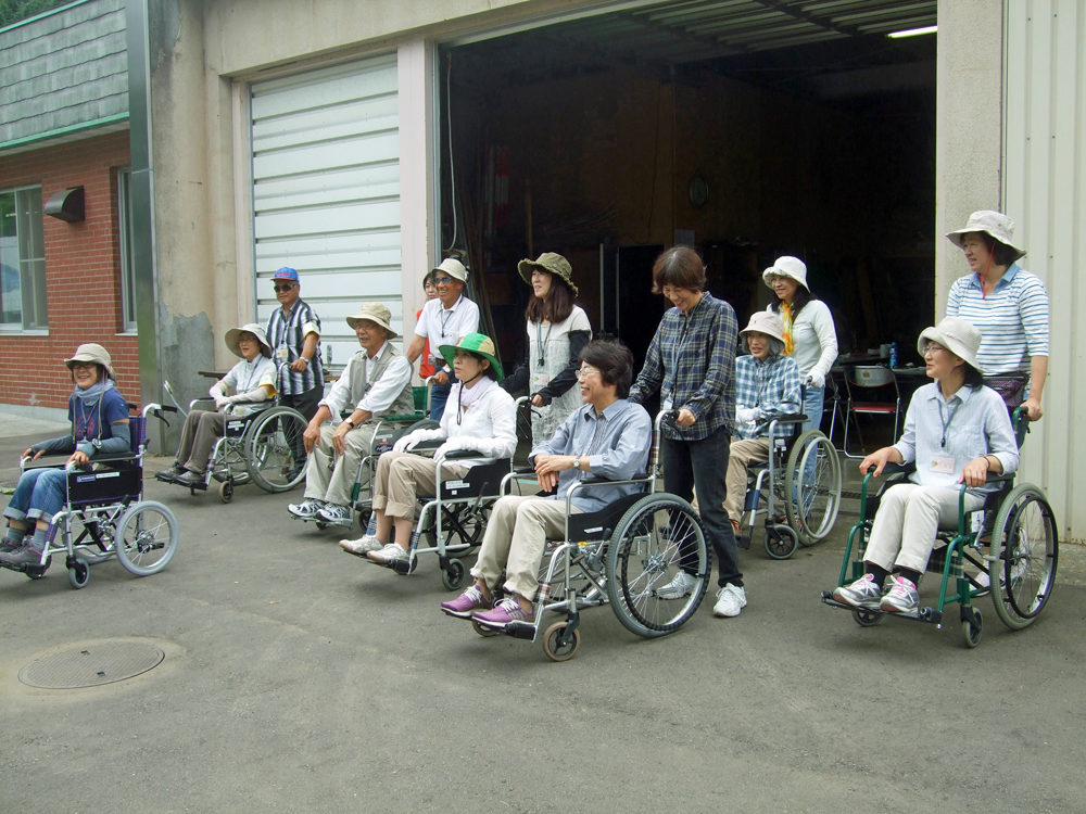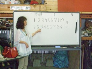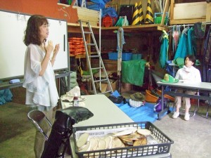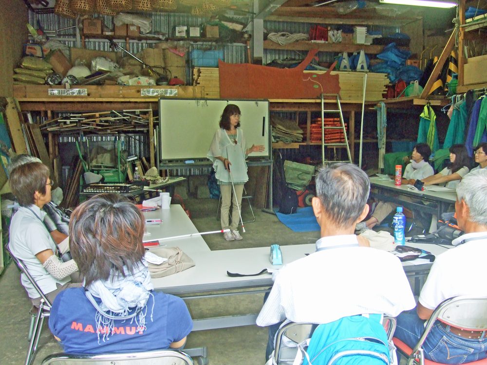 まずは管理事務所横の倉庫でユニバーサルデザインについての講義です。
