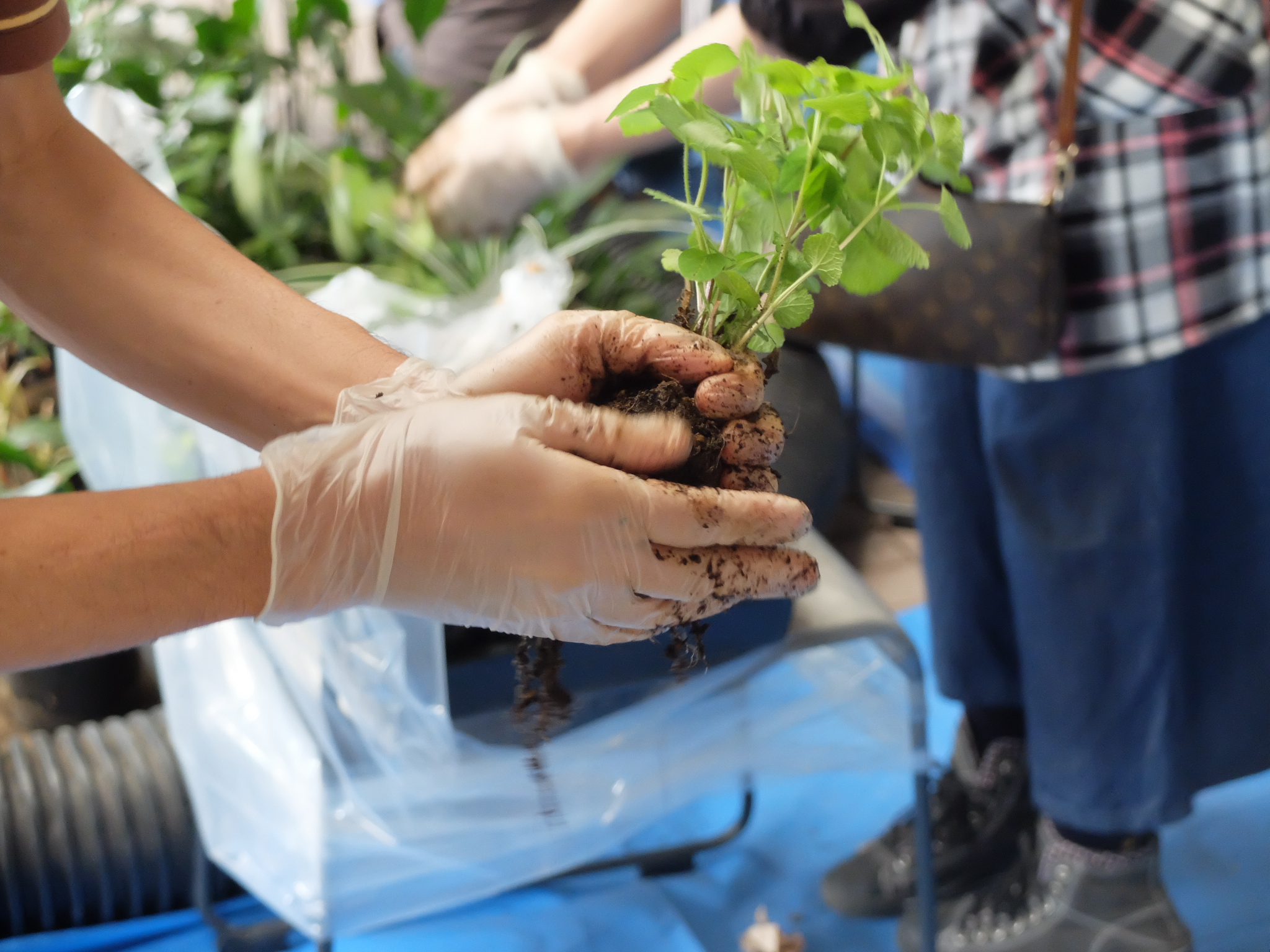また、沢山の苗を植え込むので、ポットから出した際にしっかりと土を落とし、