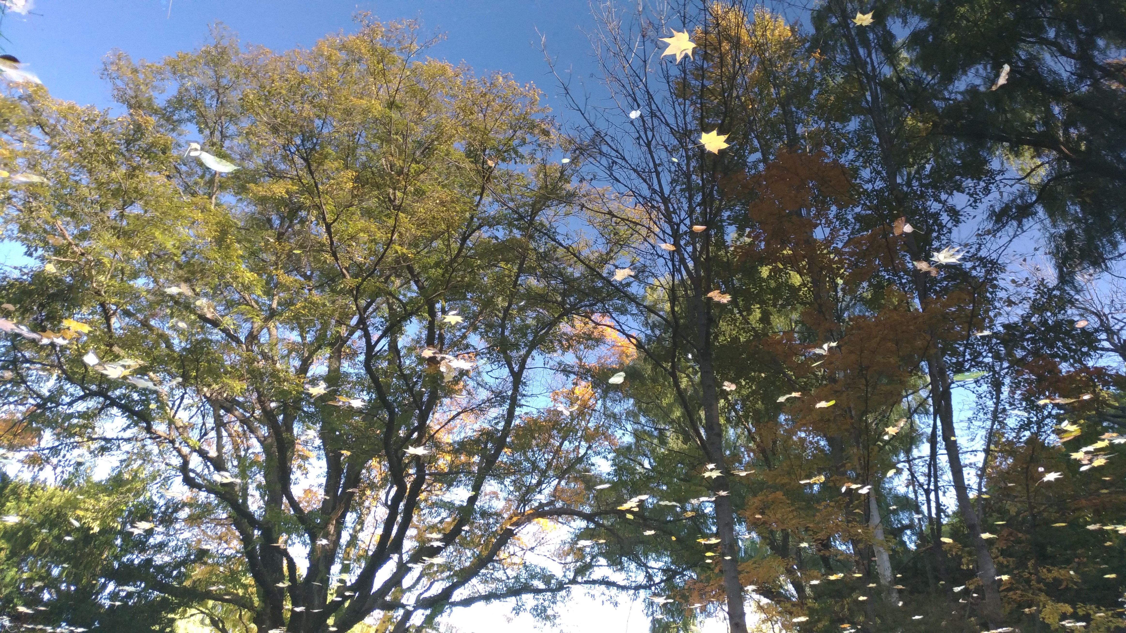 水面に写った紅葉を撮りました。