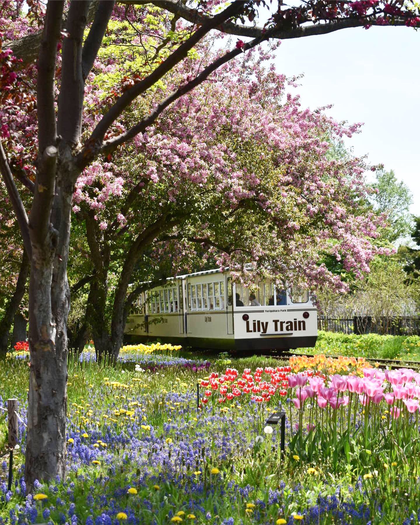 お花畑を走るリリートレインを撮りたくて、画角を決めて電車待ちをしました。