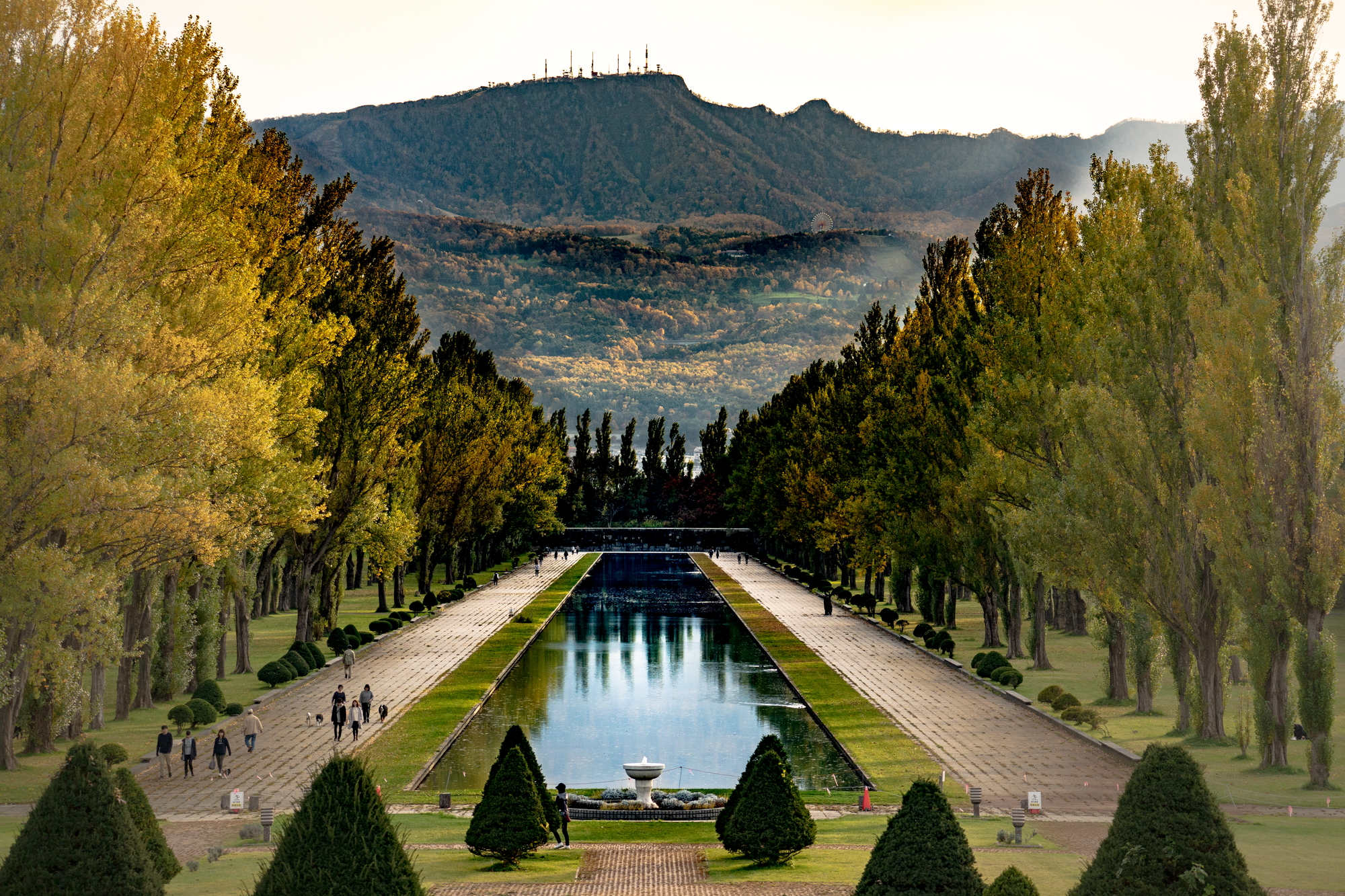 前田森林公園のシンボル的な景色ですが、紅葉と夕景が相まって、雰囲気のある情景でした。