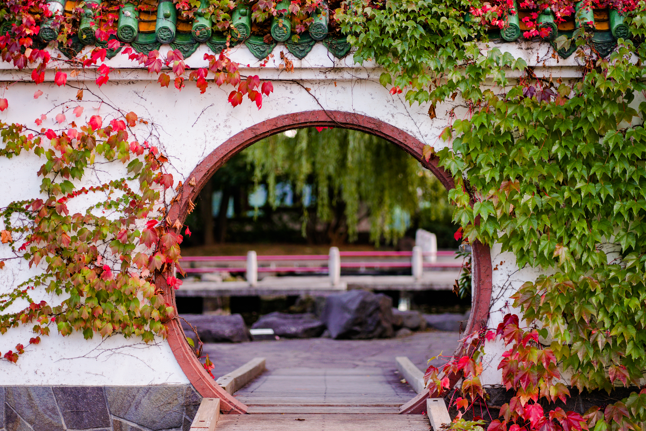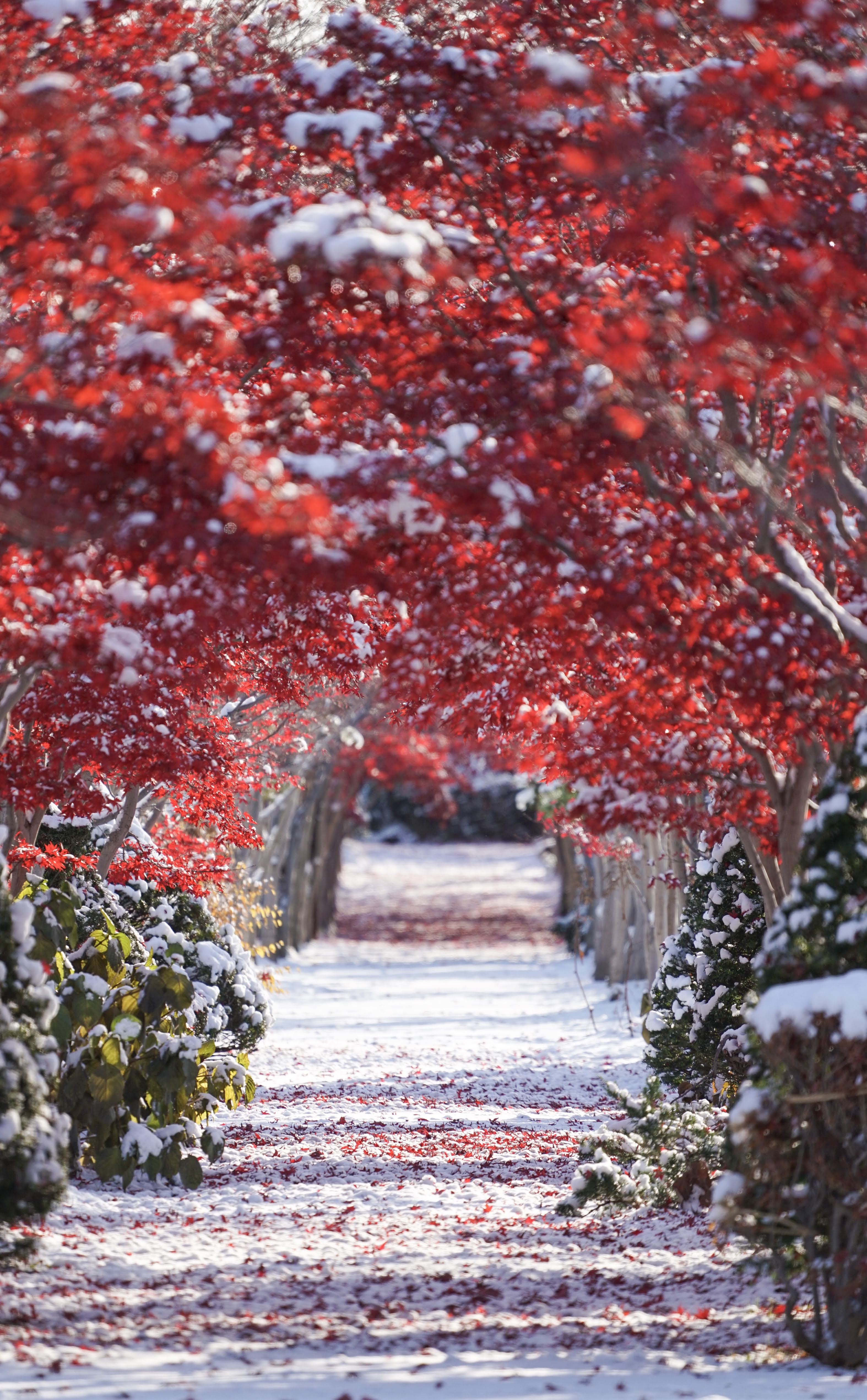 開放は終わっていましたがどうしても雪と紅葉が撮りたく、朝に門の外から望遠で覗いてみました!