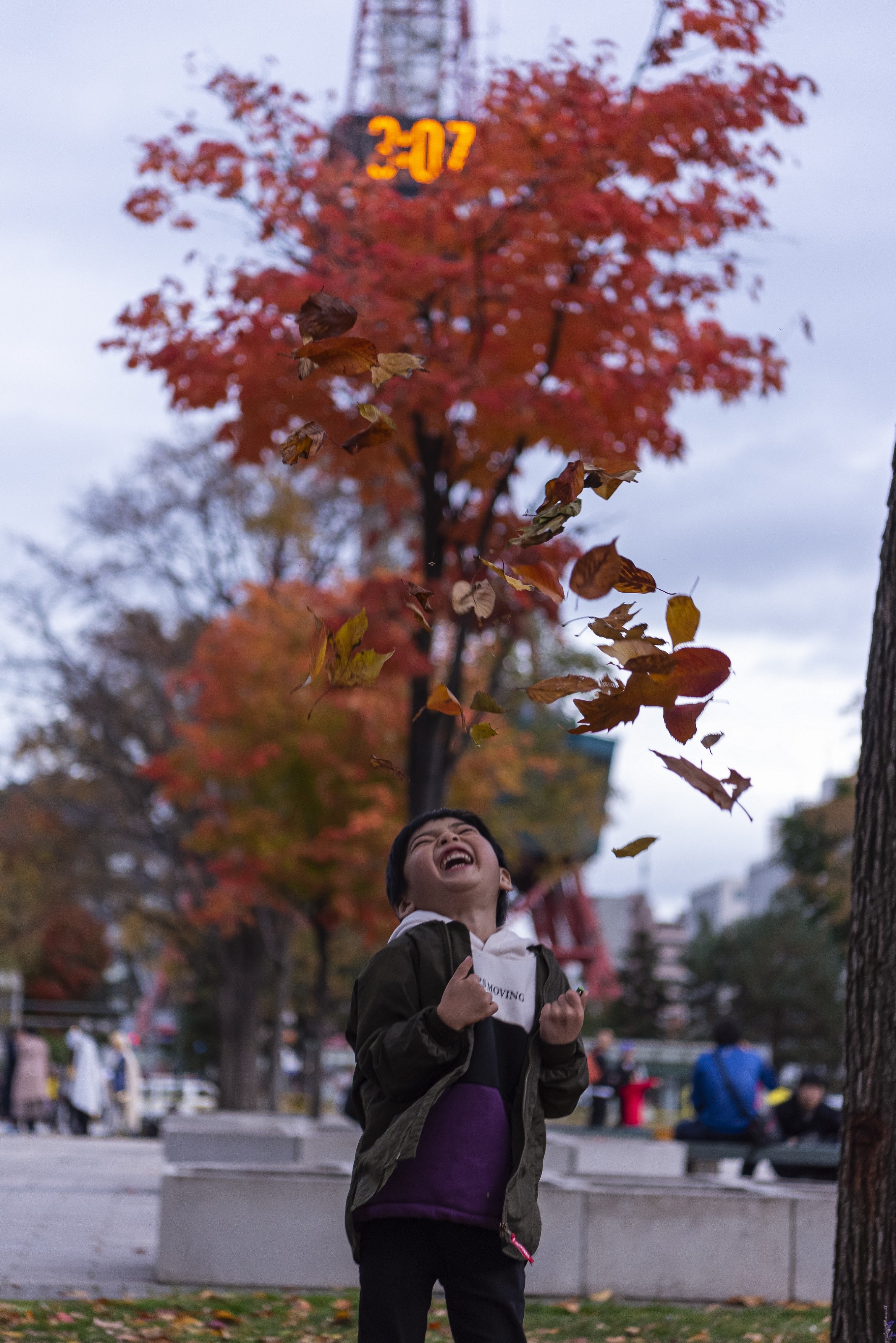 舞い上がる落ち葉を見て、はしゃぐ息子リアクションが楽しくて、見ているこっちまで幸せになるひとときでした。