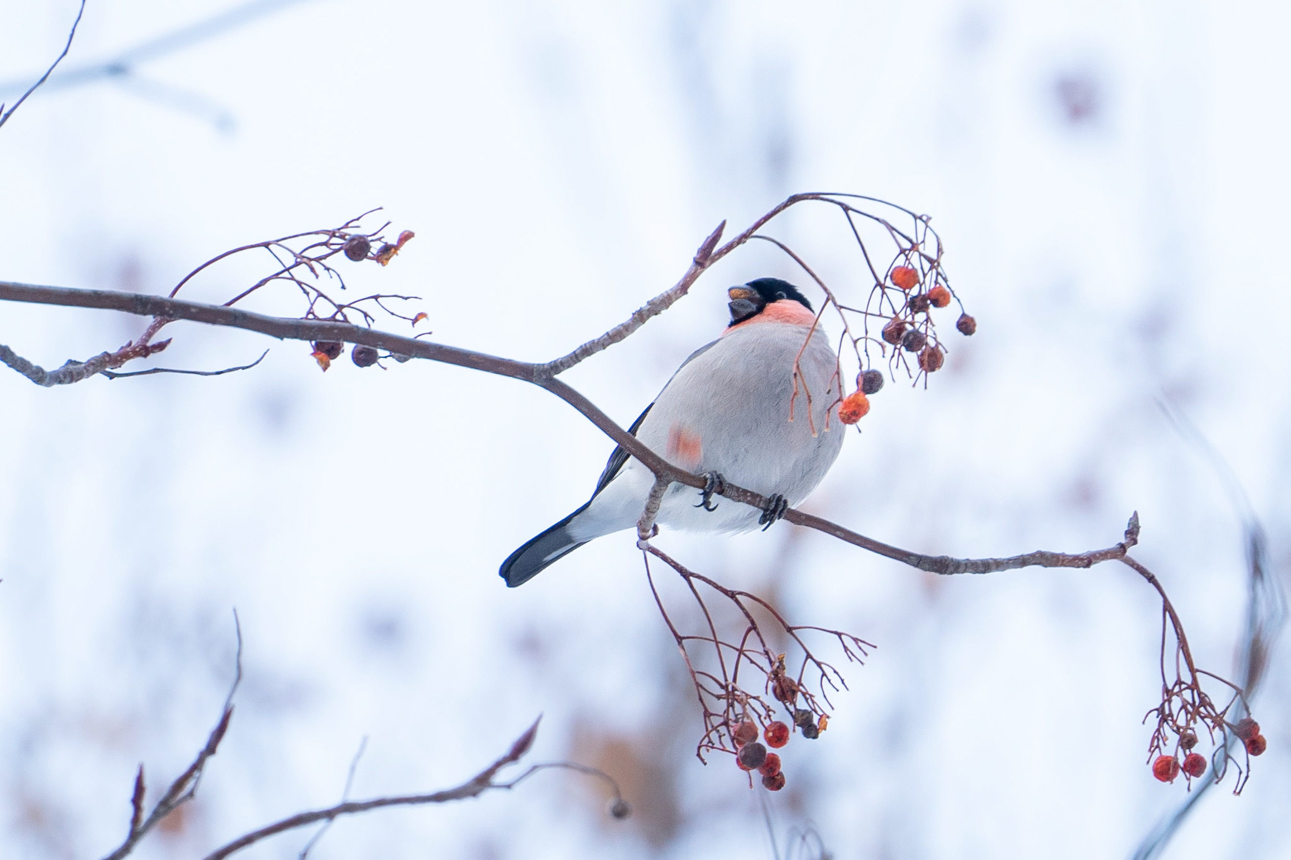 初めて野鳥観察をして、初めて見つけられた記念すべき1羽目です。ナナカマドの実がまだたくさん残っていて、どれにしようかな〜と迷っているように感じました。