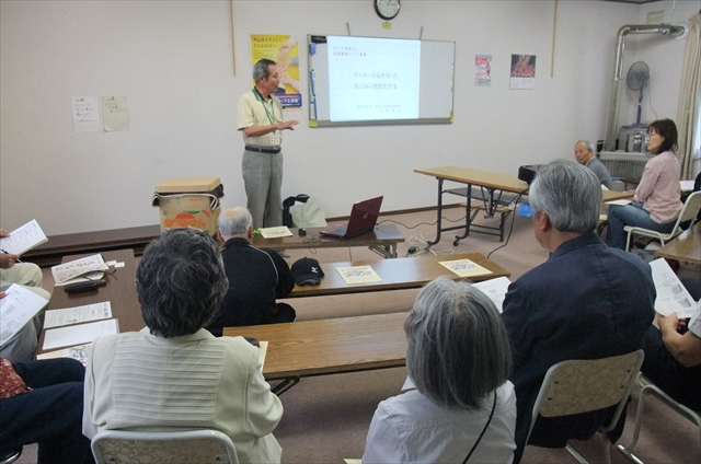 取材に訪れたこの日は、ちょうどこのモデル事業で「段ボール箱を使った生ごみの堆肥化方法」の講師をお招きして堆肥化を学ぶという日でした。