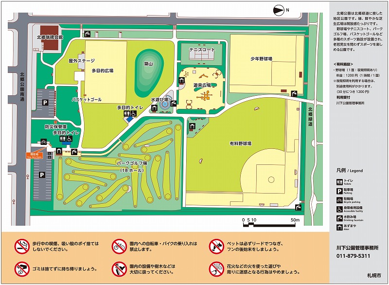 使用予約や料金受付は川下公園管理事務所で行っております。
