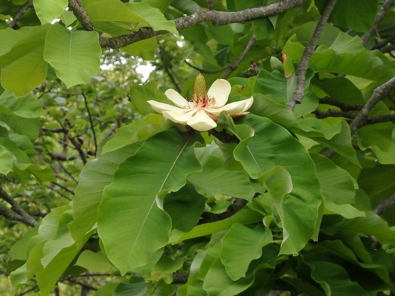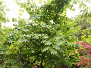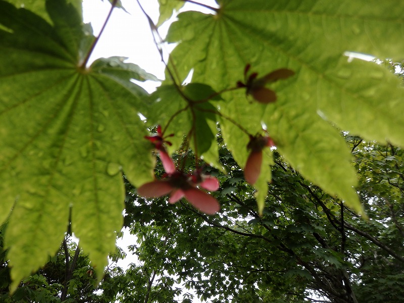その横には大きな葉っぱのハウチワカエデ!本当に天狗が持っているうちわみたい!ってこの葉っぱ見るたびに思いますよね~。葉っぱの裏側を見てみるとしっかり種もついています。