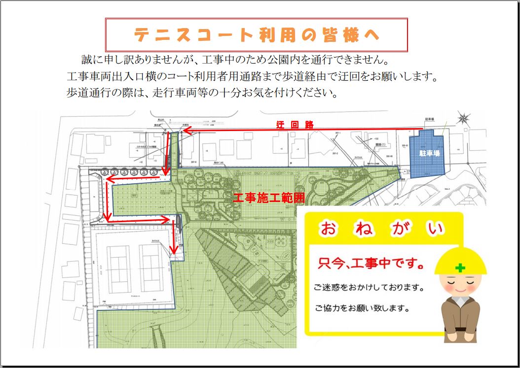 誠に申し訳ありませんが、テニスコートをご利用の際は、工事車両出入り口横の