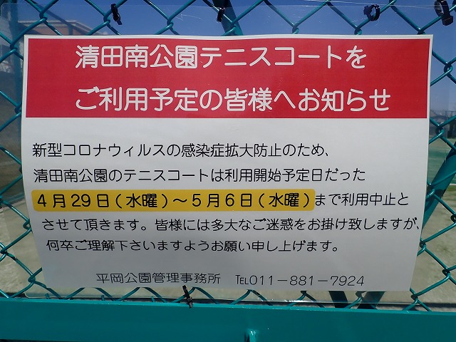 新型コロナウィルスの感染症拡大防止のため、清田南公園の運動施設(テニスコート)は