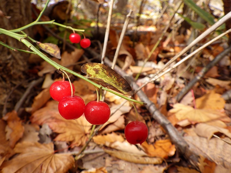 茶色の割合が多いこの時期に、林内に「色」があるととても目立ちます。エゾノキツネアザミなんかは茎がほとんど枯れているのに、まだ花を付けているものがありました。