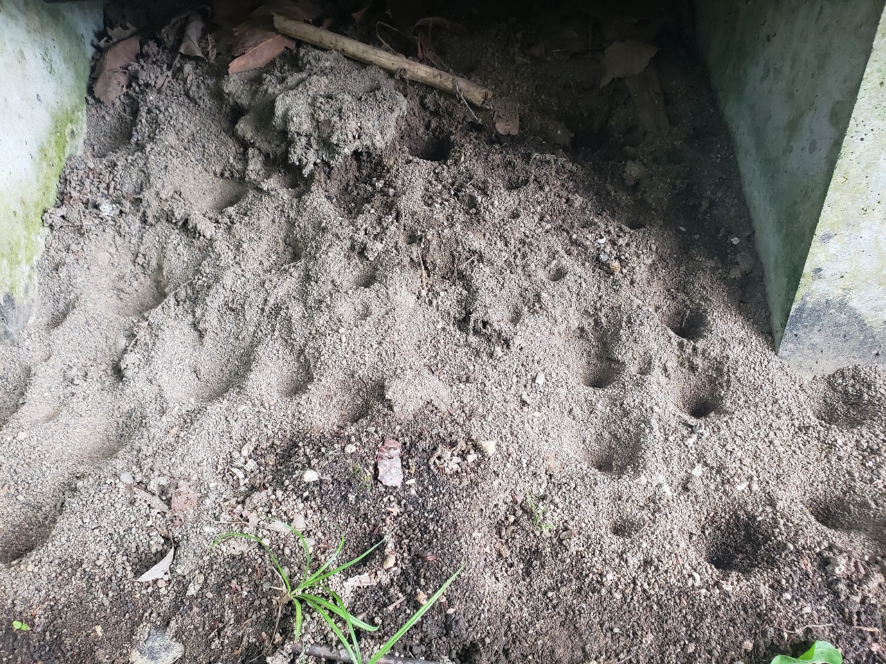 こちら、ウスバカゲロウの幼虫の巣、通称「アリジゴク」です。皆さんも一度は聞いたことがある名前だとは思います。