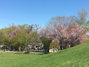 前田公園ただいま桜が満開です! 2017年5月4日2017年11月4日 前田公園の桜が満開になりました! たくさん桜があるわけではないのですが ちょっとしたお散歩のとき、心を和ませてくれています。 桜の横にサイロがあるのでお写真のお好きな方は 風情のあるいい写真が撮れそうですね! こぶしの花もきれいですよ。 ゴールデンウィーク中には散り始めそうですが お時間のある方はぜひお越しください。