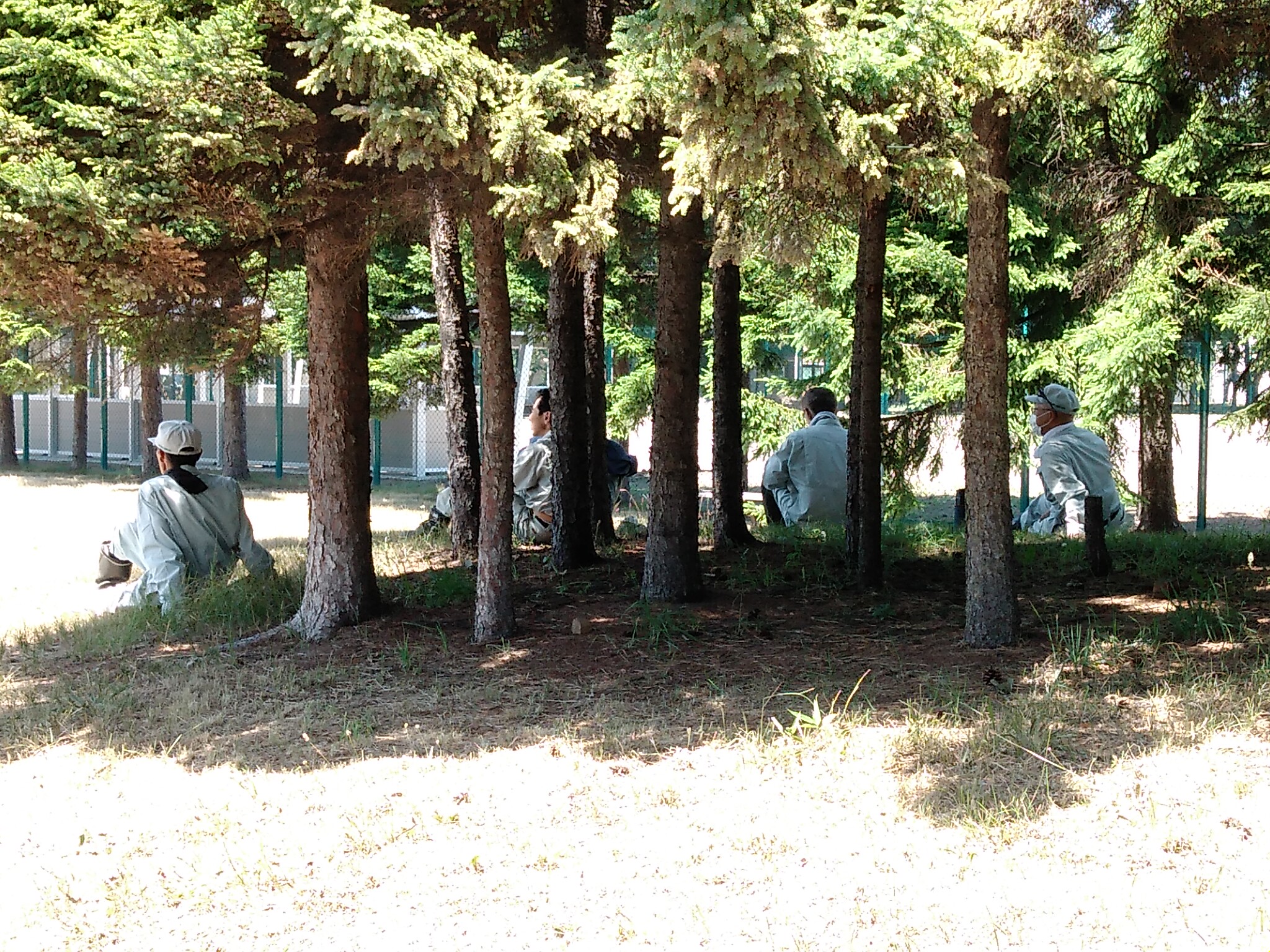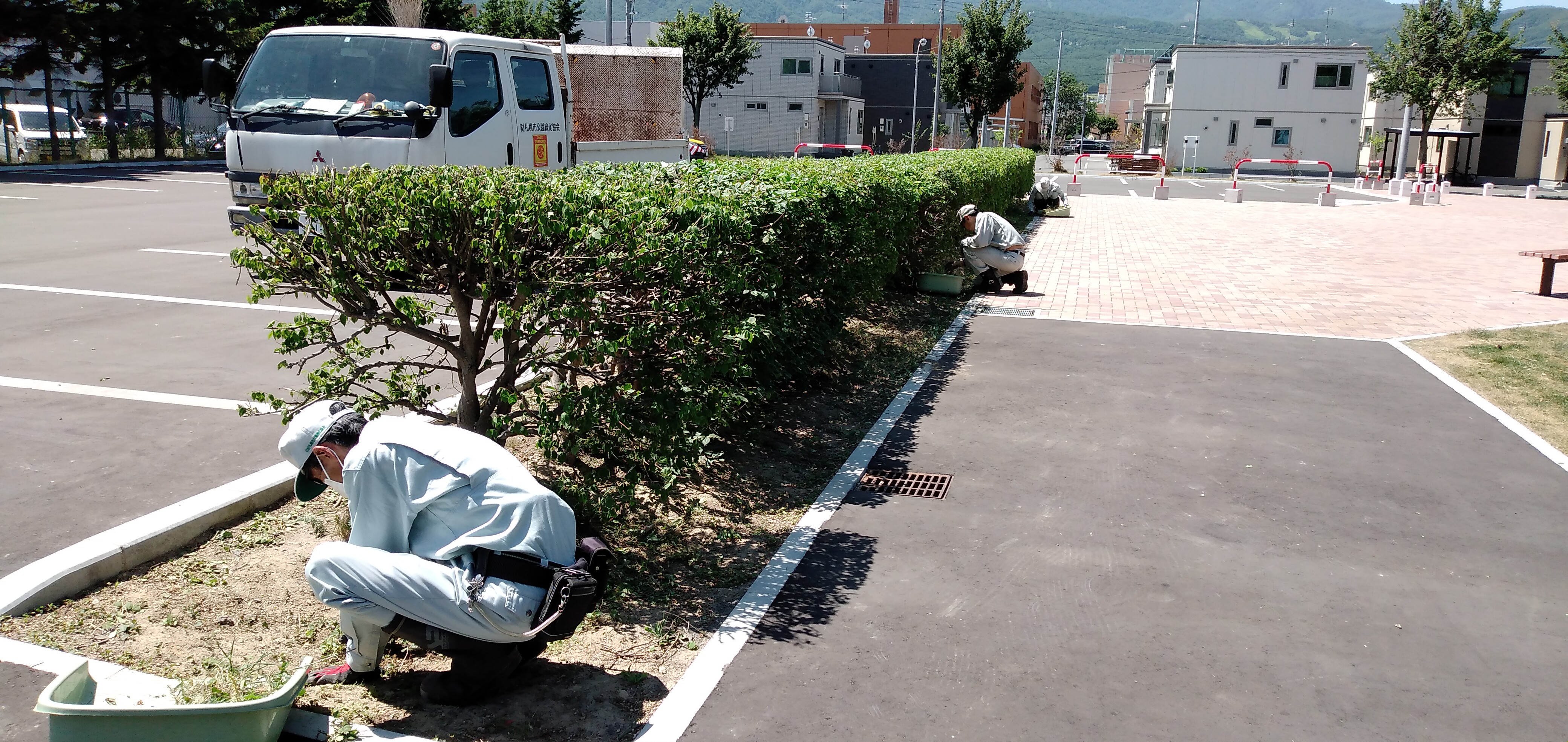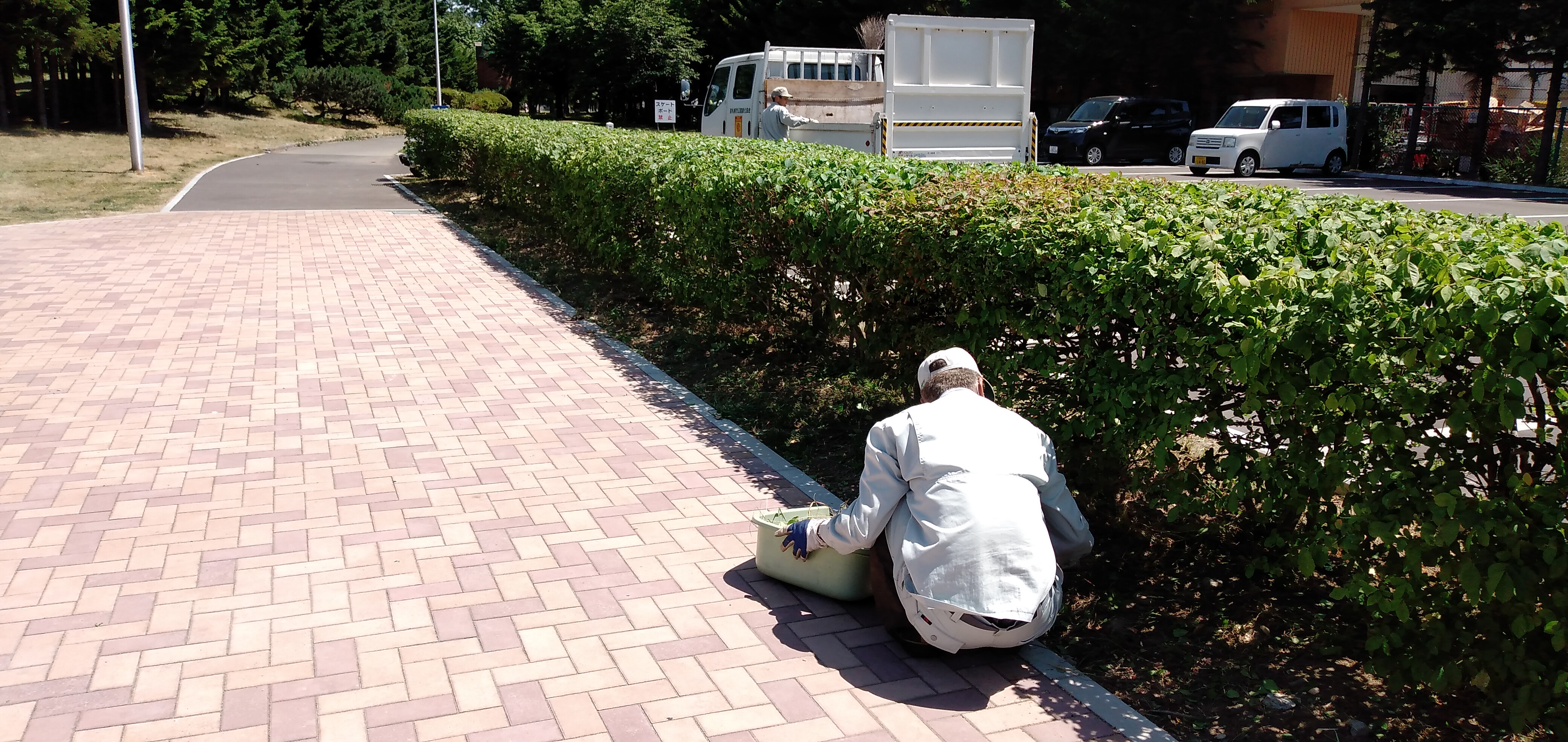 写真は刈込作業が終わったスタッフによる除草の様子です。