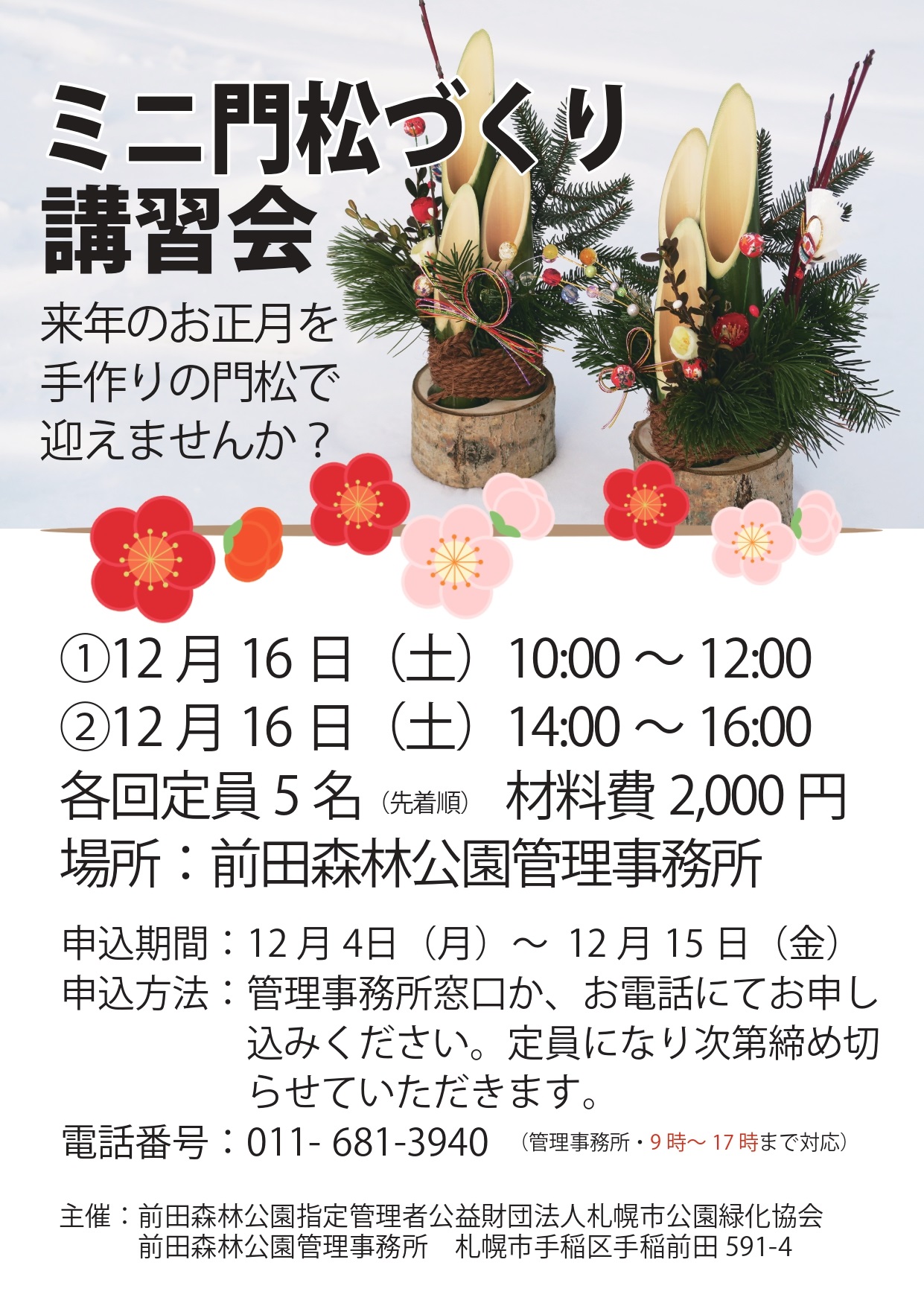 さて、今年度もミニ門松作り講習会を開催します!好きな素材を組み合わせオリジナルのものが作れます。