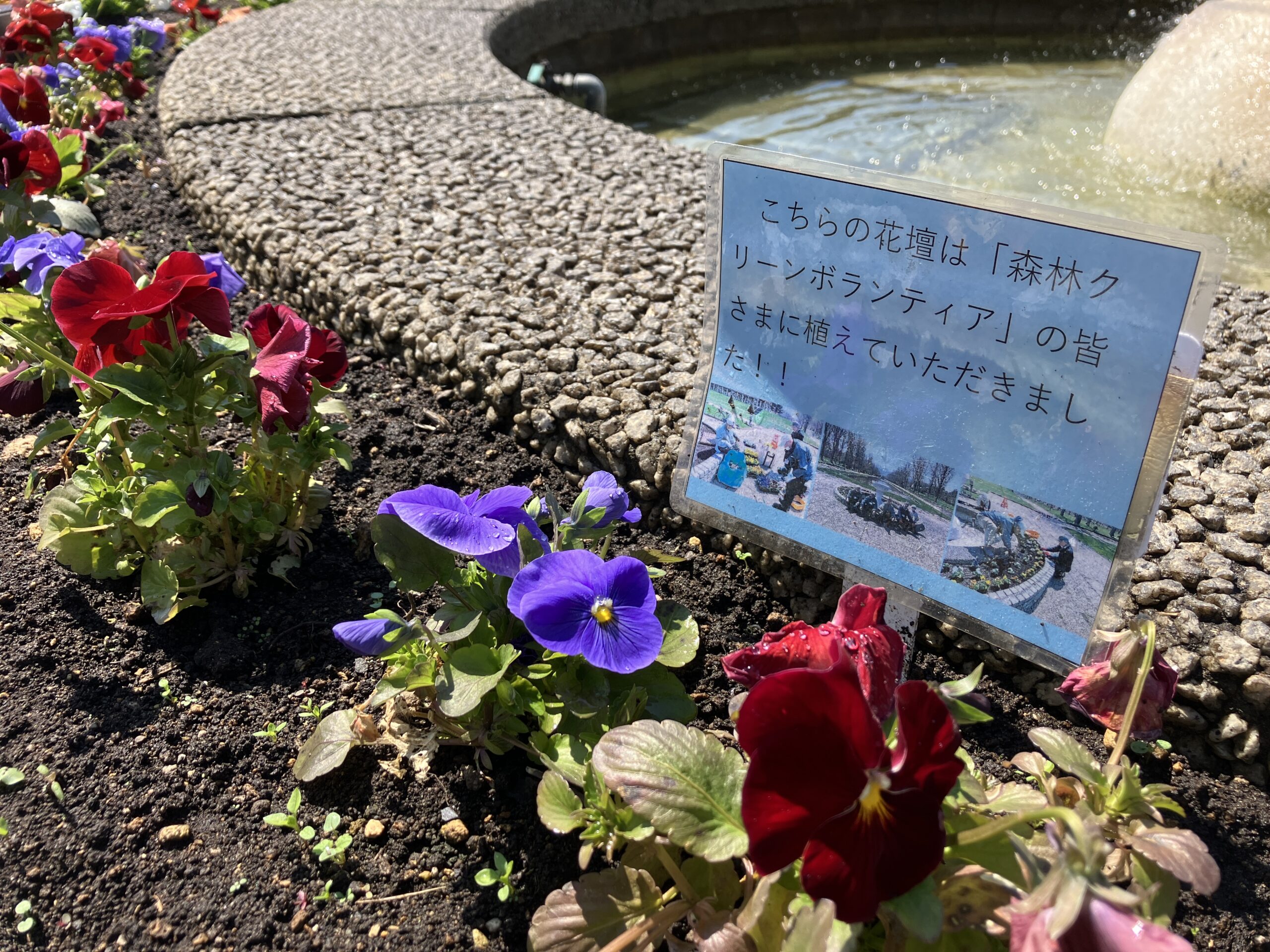 1回目は4月下旬。今年から新たに2名のメンバーが仲間入りしました!サンクガーデンの噴水周りはボランティアの皆さまと植えているんですよ。