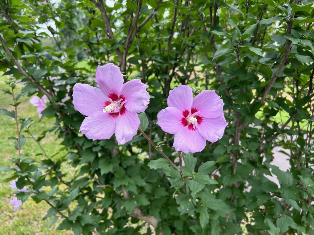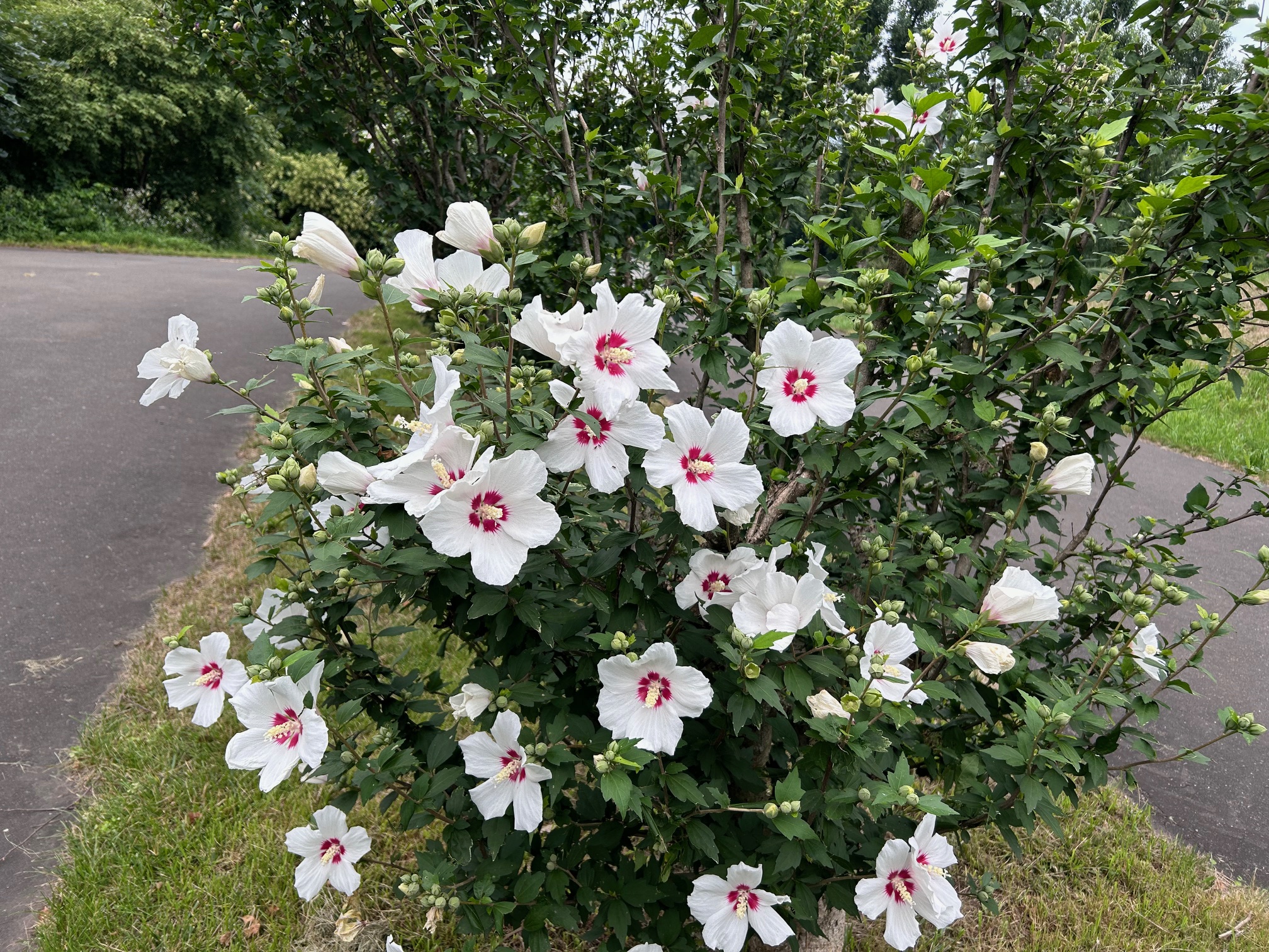 皆さま、こんにちは 連日暑い日が続いておりますが、いかがお過ごしでしょうか。 園内では現時点でムクゲはキレイに咲いております。 お盆休み等で近くをお通りの際はお散歩がてらに是非お立ち寄りください。 皆さまのお越しを心よりお待ちしております。