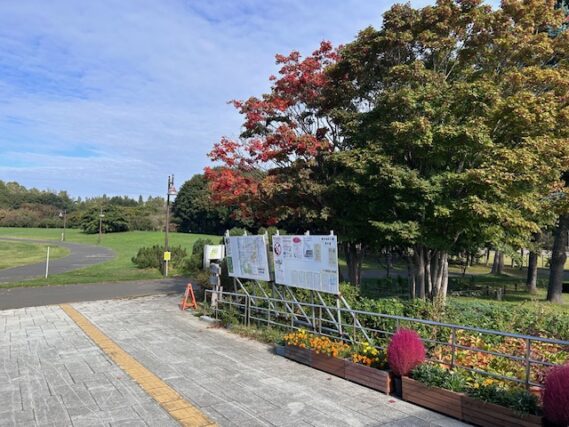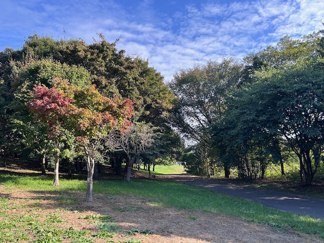 園内の樹木は色づいてきているものもありますが、まだポツリポツリといった感じですね。