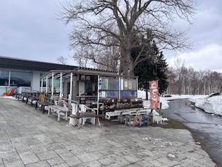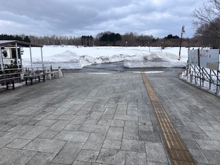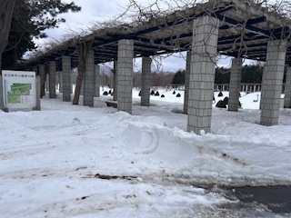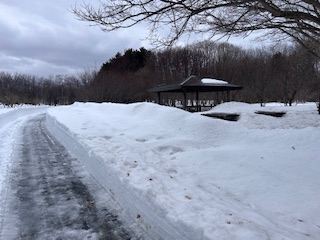 園内の四阿やベンチに関しましてはまだ雪がありますのでご利用できません。