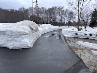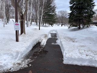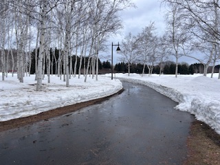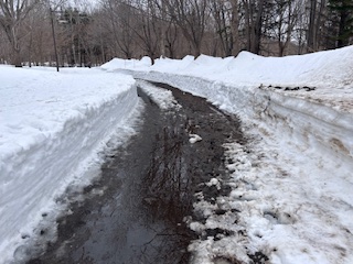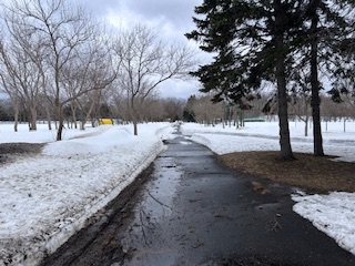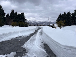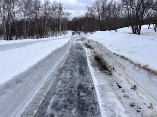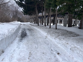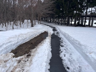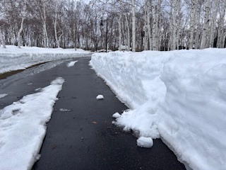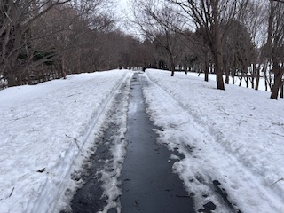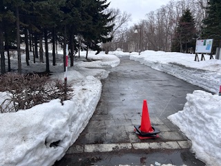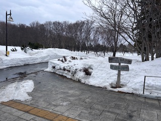 園路の雪解け状況は日当たり等の関係上ばらつきがございます。完全に園路が出ている箇所、雪が残っている箇所もございます。