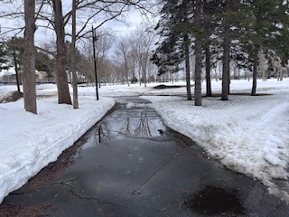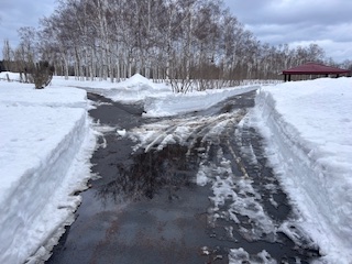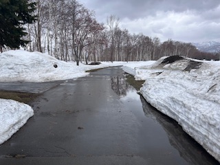 気温が高くなり暖かい日が続いているため、雪解けも進んでおります。