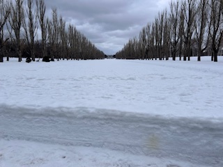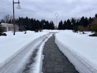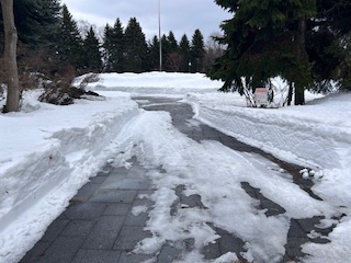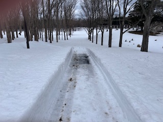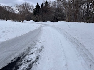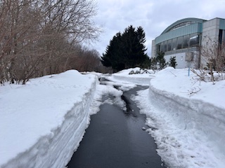 現在スタッフの方で園路の雪割を進めている状況となっております。新川駐車場から管理事務所前までの園路を含む展望ラウンジまでの裏の通りも通ることができ、園内大きく1周歩くことができるよう園路の雪割作業が進んでおります。※カナールに関しましては現時点で雪割は入っておりません。雪が積もっている状況です。