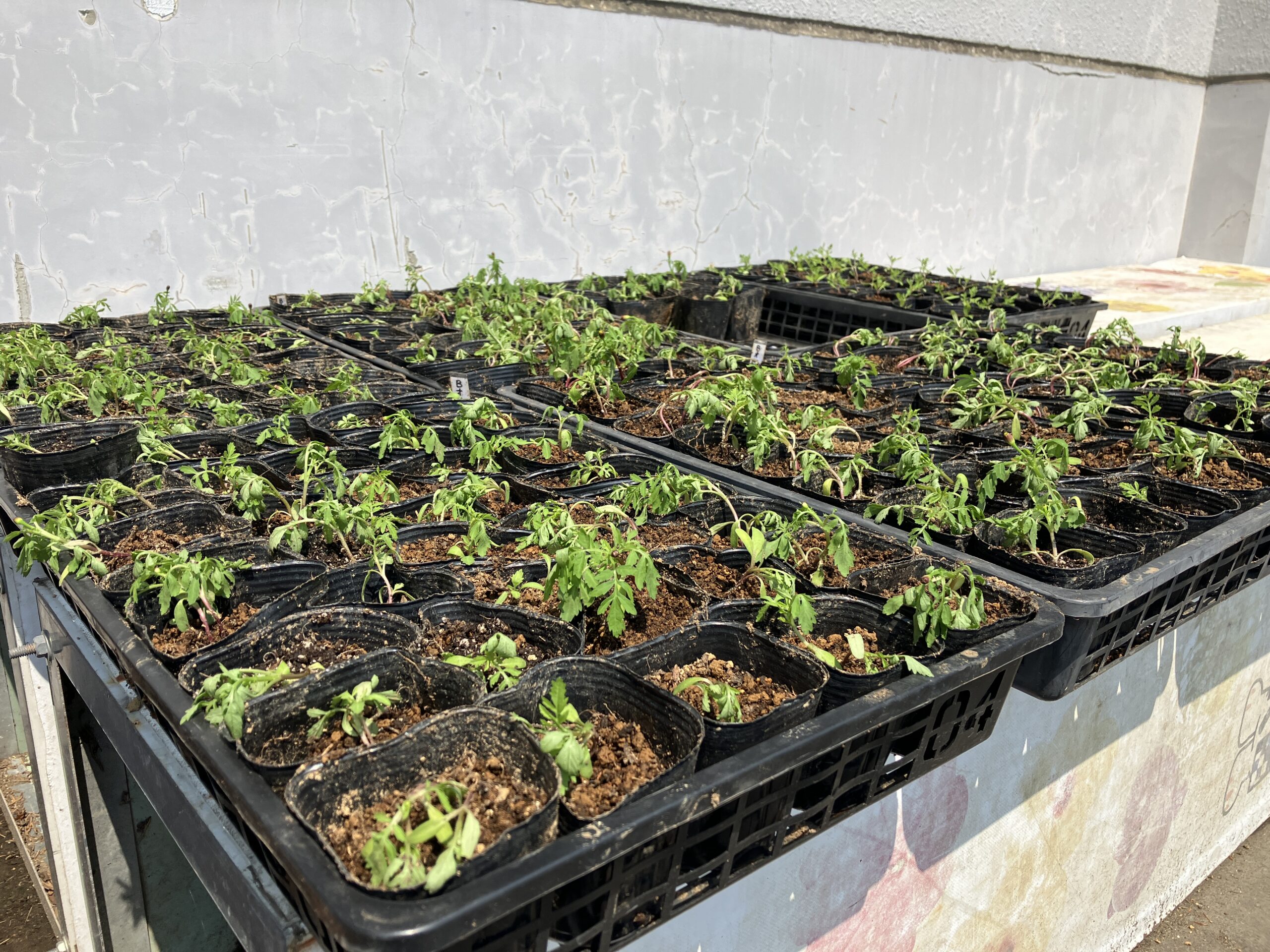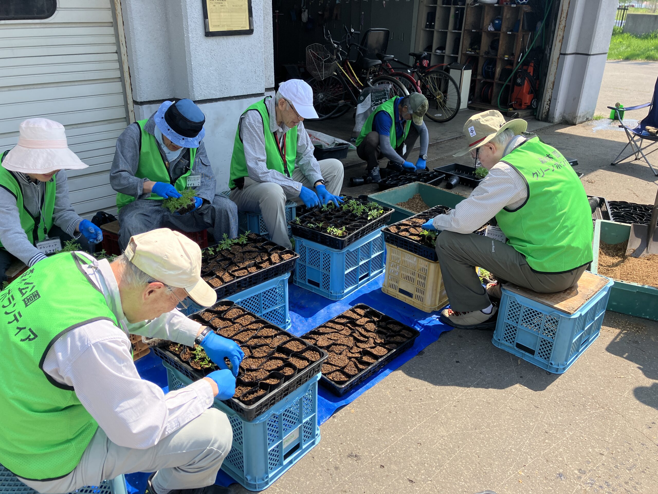 本日のボランティア活動はマリーゴールドの移植作業でした。