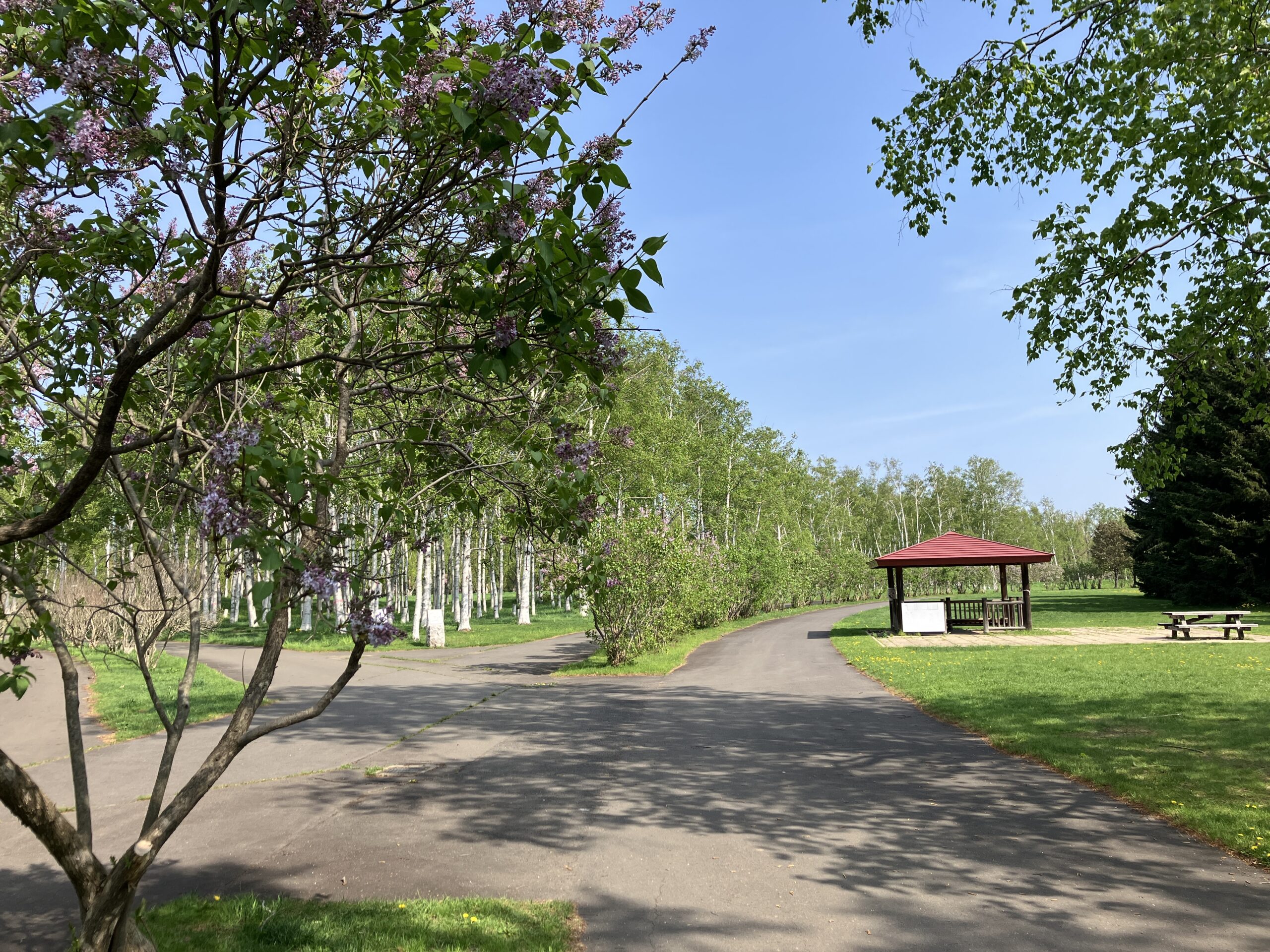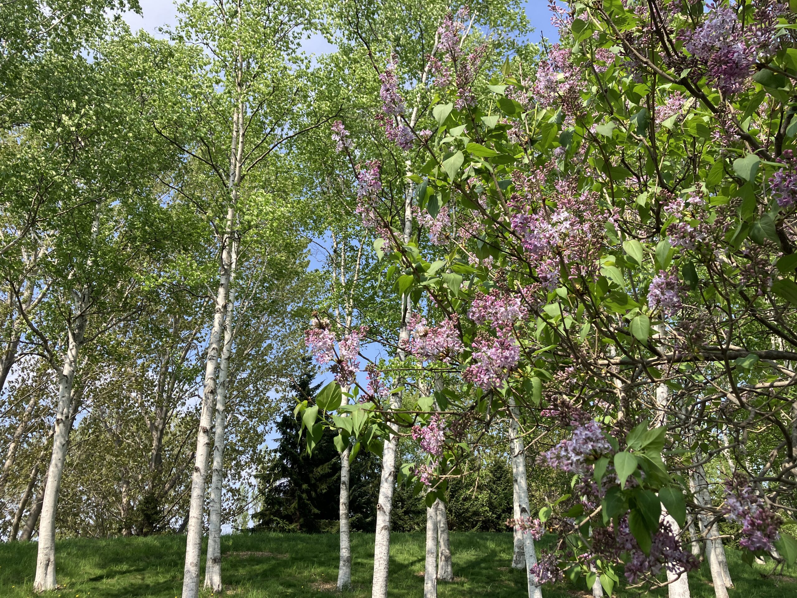 列植のライラックはやっと咲き始めました。