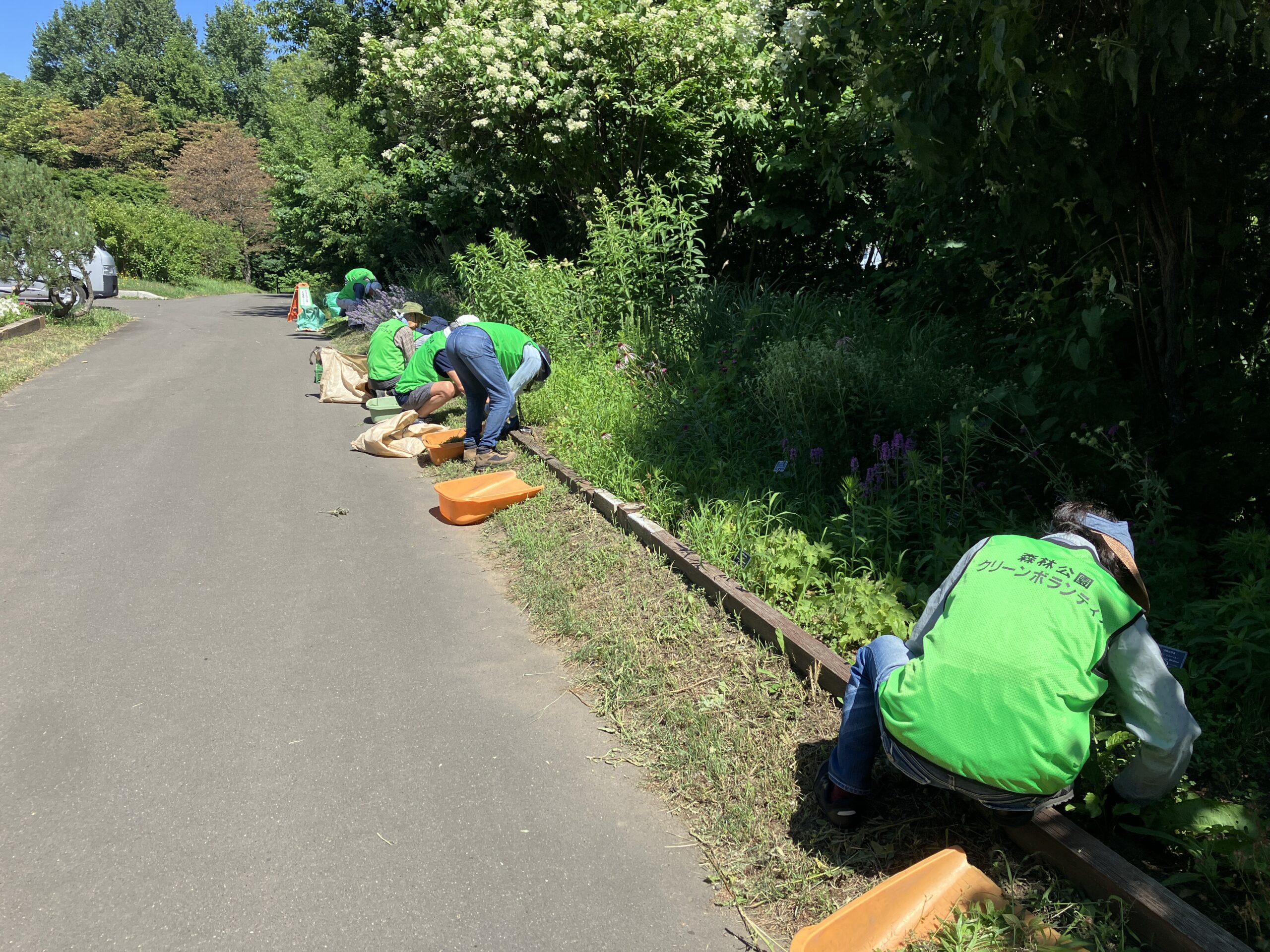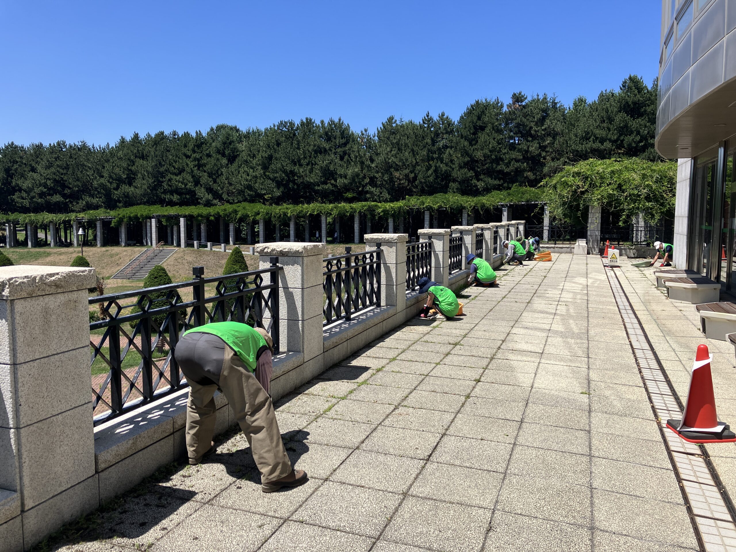 これで活動終了予定だったのですが、ラウンジ周りの雑草が目立つ!とのことで、急遽追加作業!