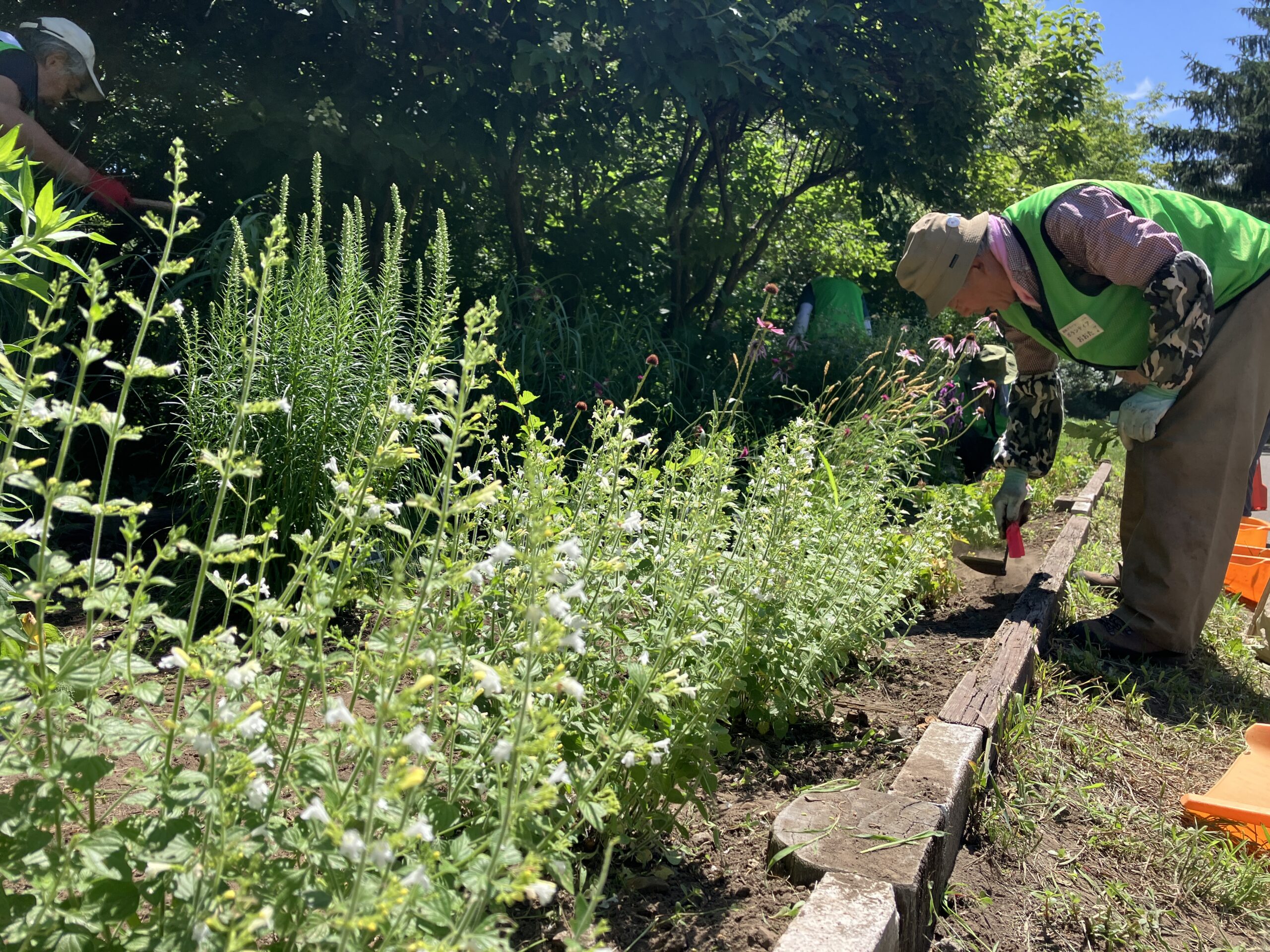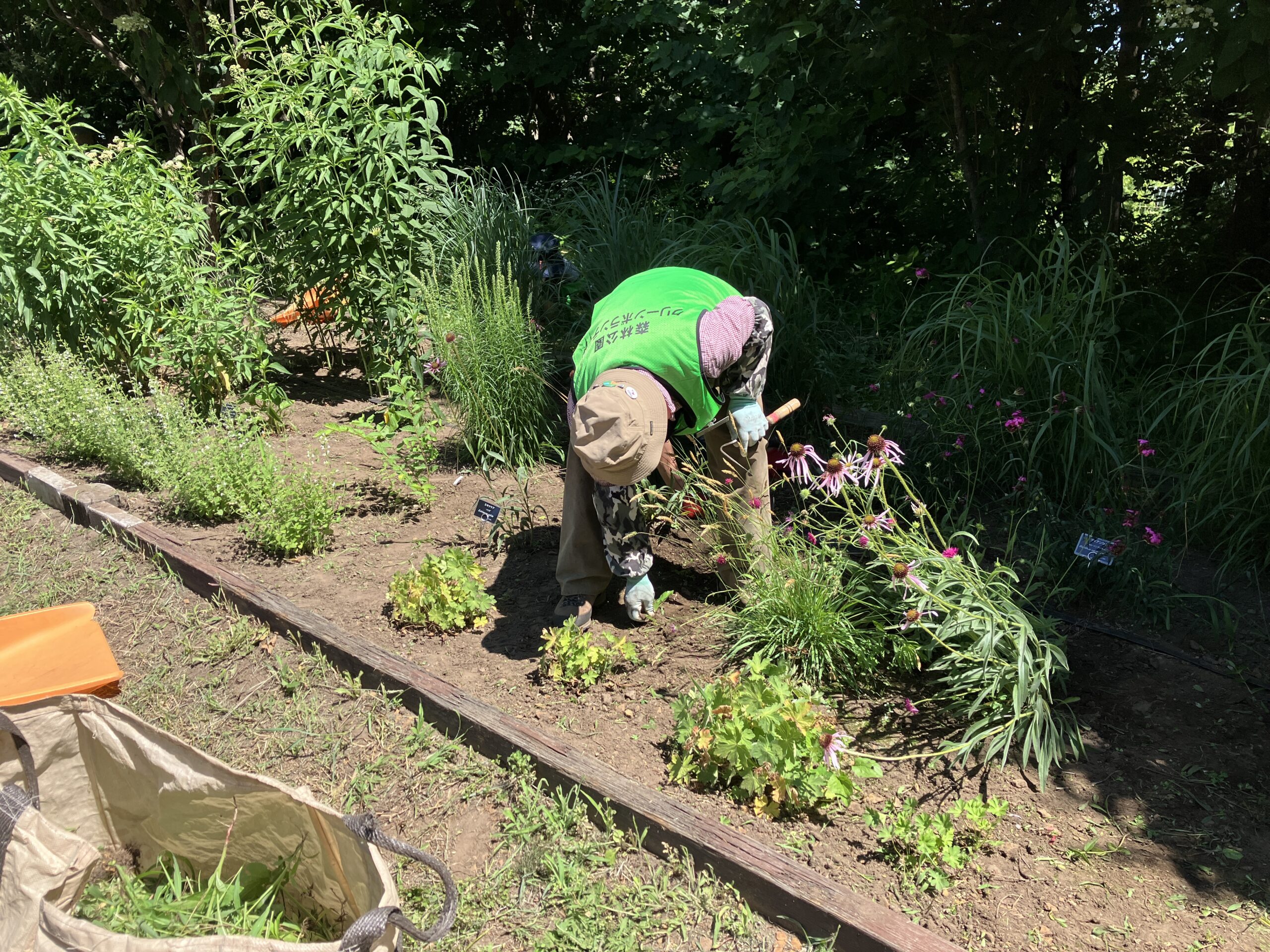 目を離すとすぐに雑草が生えてくる宿根草花壇の雑草取り。