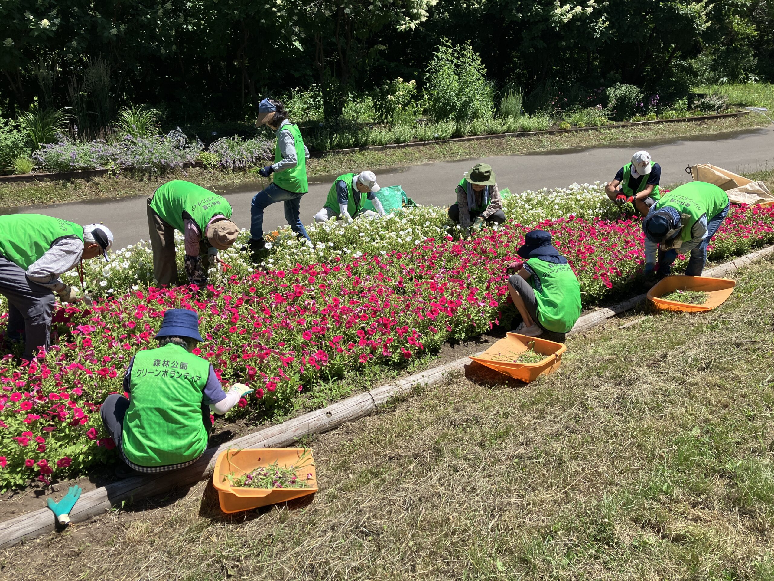 お次はペチュニア花壇の雑草取りと花柄摘み。