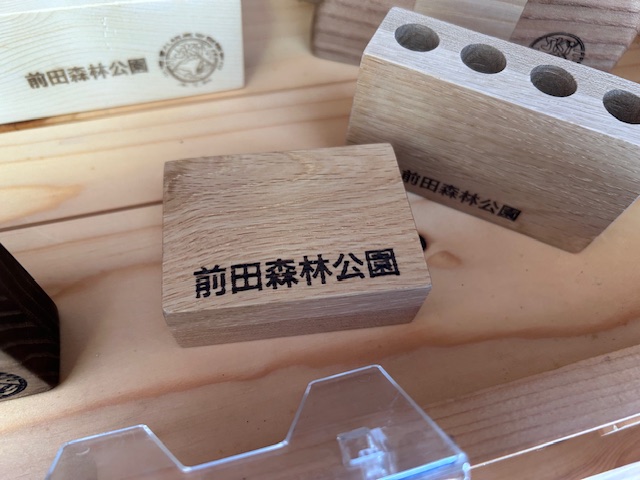 また、大好評をいただいております前田森林公園オリジナルグッズの第三弾として今回はご納品いただいた木工科の製品にのみ前田森林公園という文字を入れていただいております。