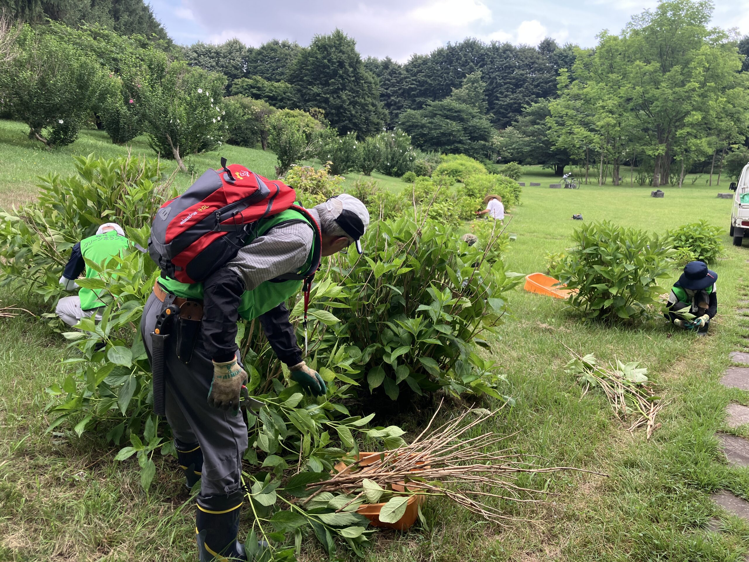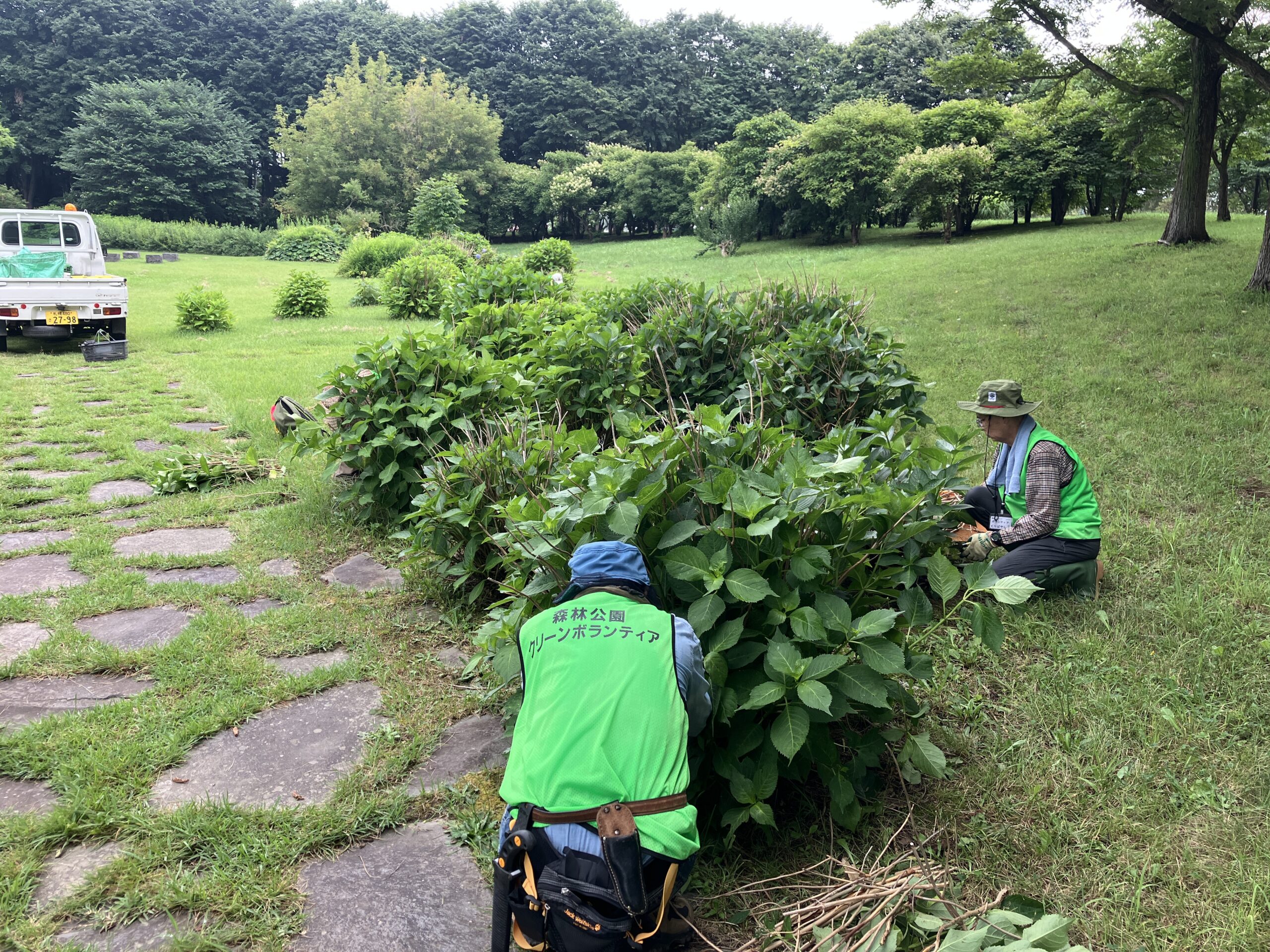 残り1時間ちょっとは花木園の紫陽花の枯れ枝抜き。