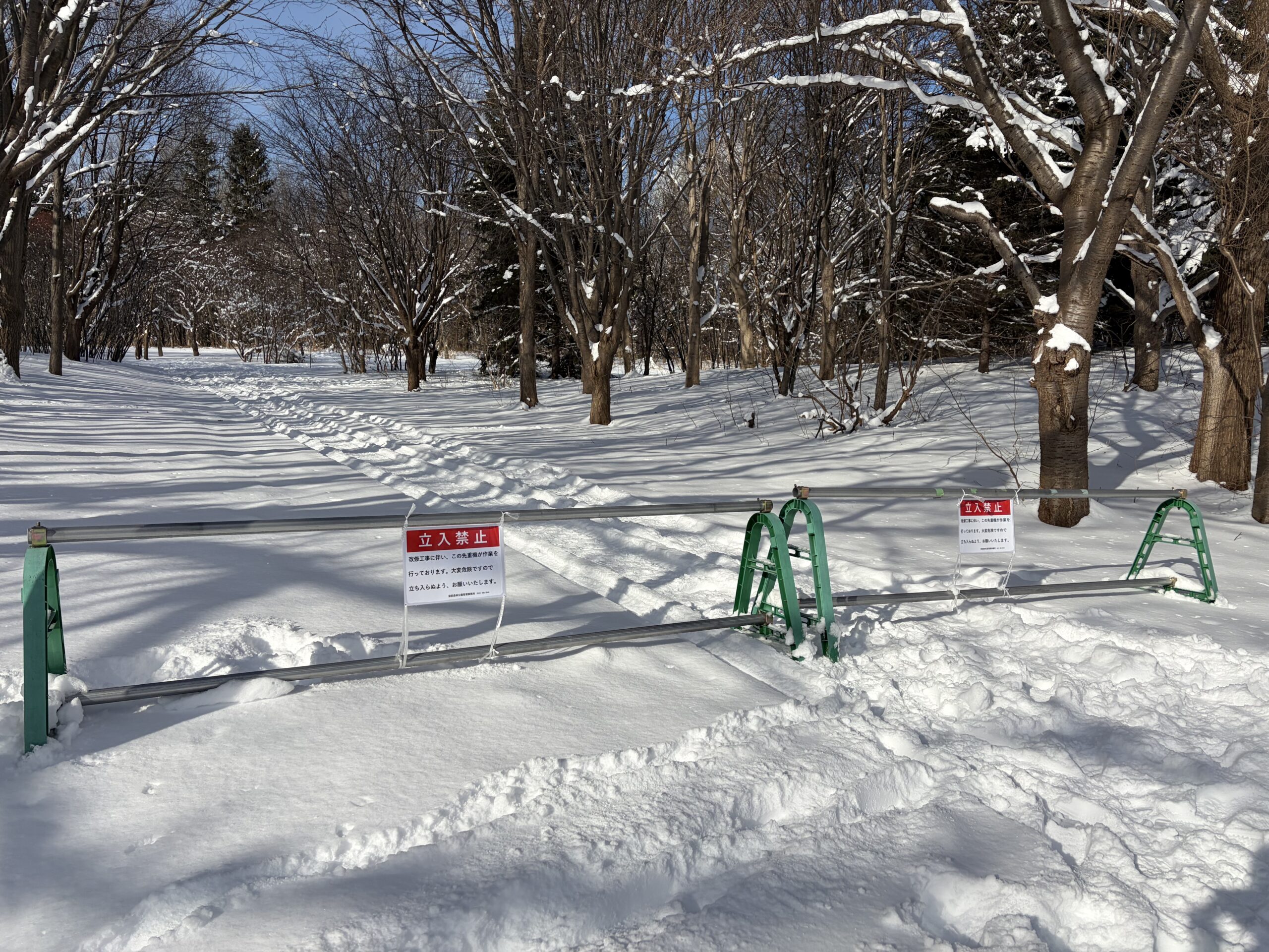 さて、昨年から園内各所で改修工事が行われており、冬の期間も改修工事に伴い作業車両が園内北側エリアを走行するため、カナールより北側エリア、野球場と球技場側の園路から展望ラウンジに向かう園路を立入禁止にさせていただきます。園路に立入禁止のバリケード設置もしております。立入禁止エリアは作業車両が走行するため、とても危険ですので絶対に立入らないでください。ご理解ご協力のほど、よろしくお願いいたします。