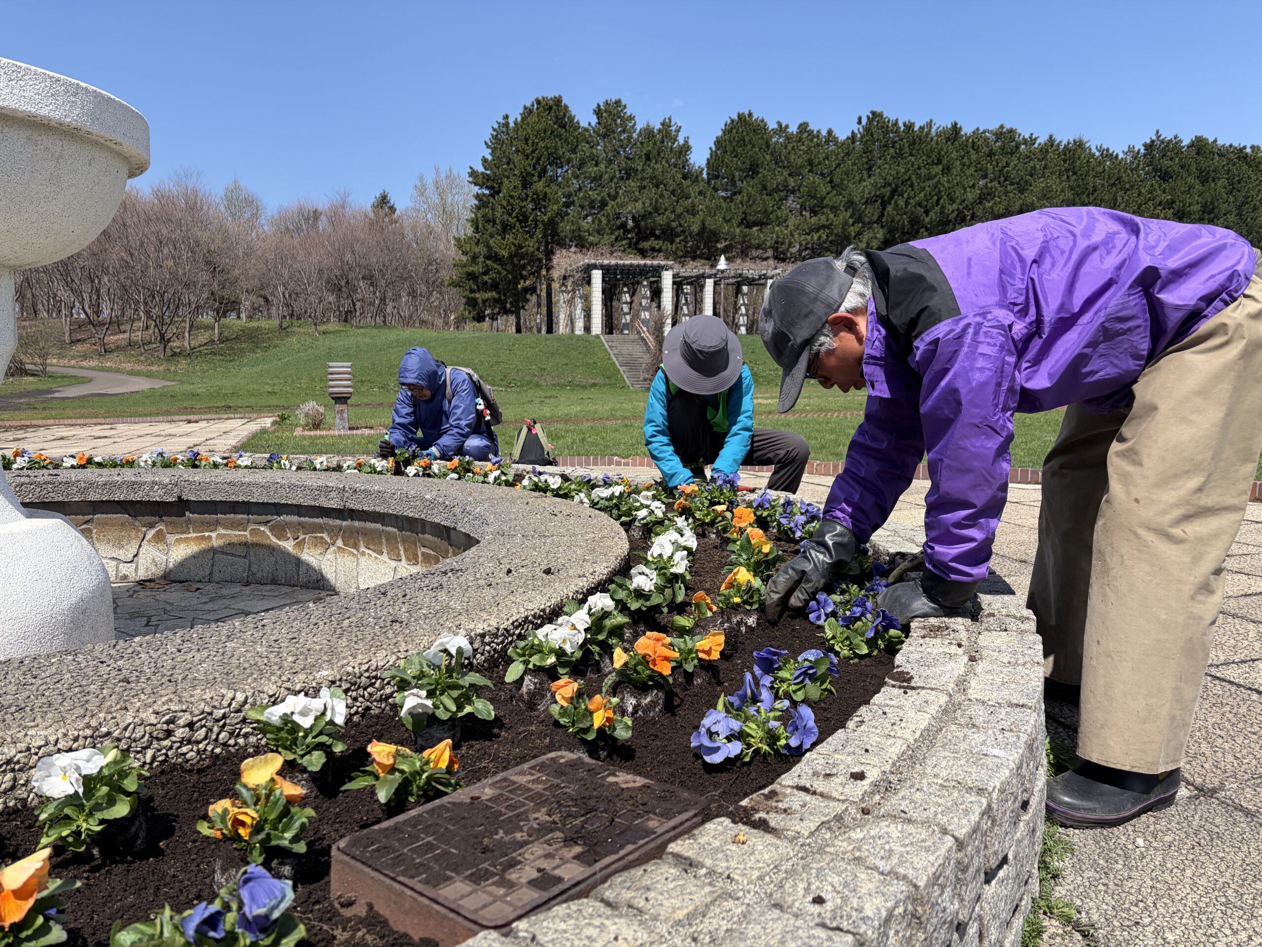 ボランティアで管理している展望ラウンジ裏の花壇も少しずつ動き始めてきました。