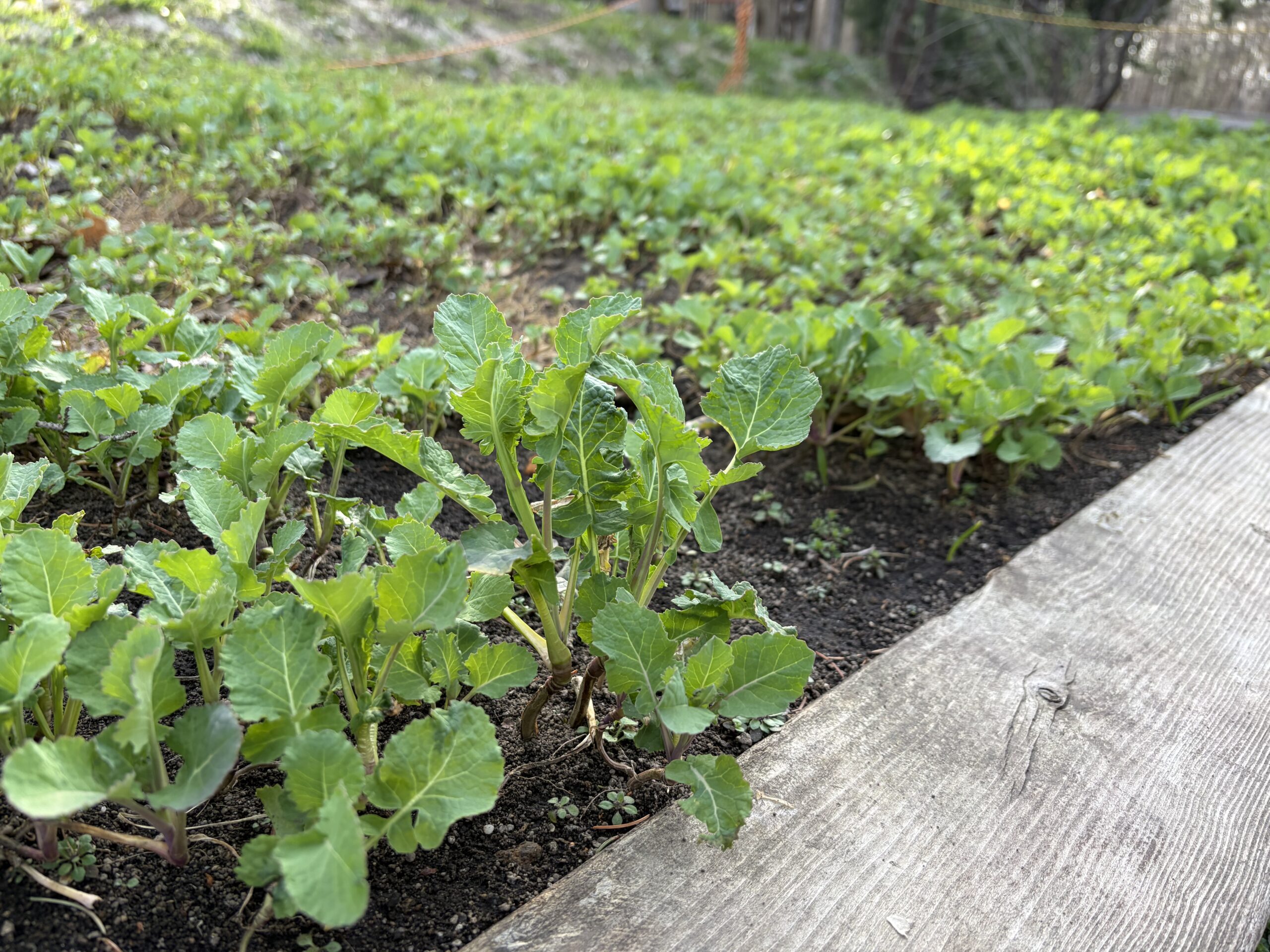 もう一つの菜の花を播種した花壇は、花壇内に野生動物の足跡のようなものが?食べられたのか、雪で少しダメージを食らったのか、一部元気ない部分がありますが、なんとか越冬したようです!綺麗に咲いてくれることを期待しています。